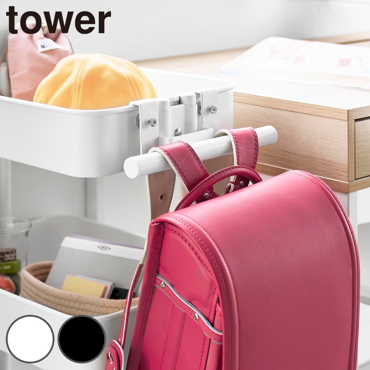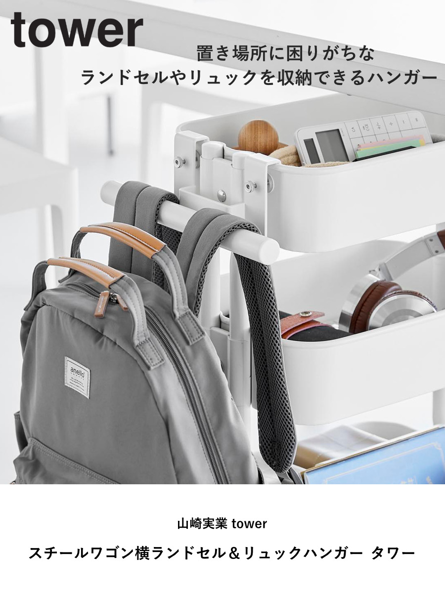 山崎実業 tower スチールワゴン横ランドセル&リュックハンガー タワー ( 4903208107716 タワーシリーズ ランドセルハンガー リュックハンガー スチール ワゴン横 ランドセル リュック ハンガー ワゴン用 ) 【ブラック】
