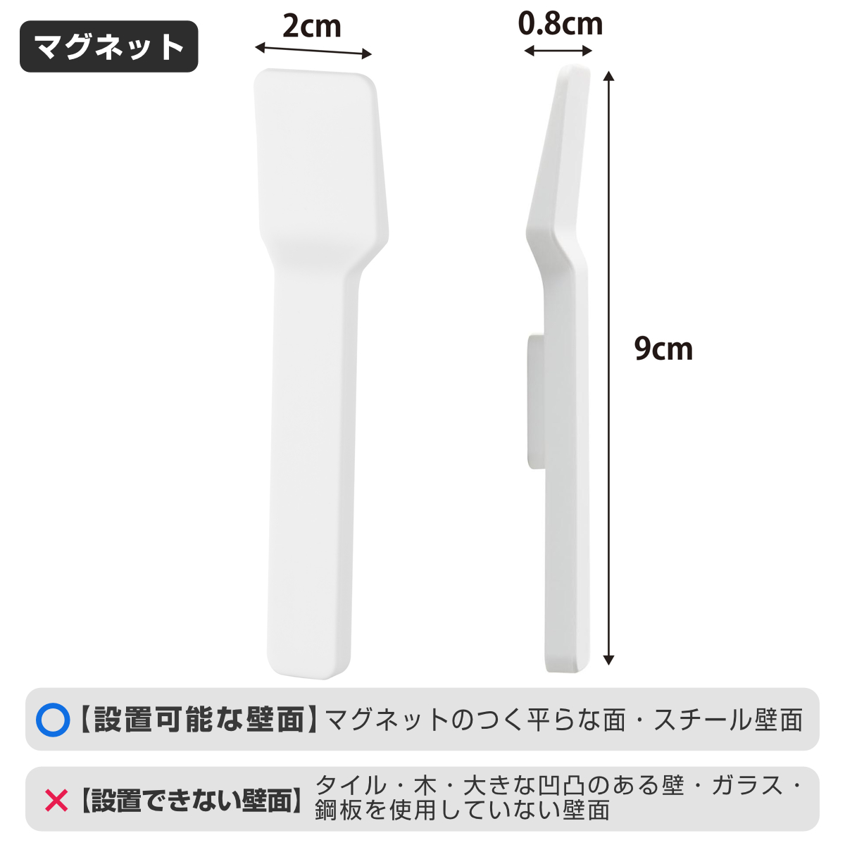 | 備考 | 【設置可能な面】 マグネットがつく凹凸のない平らな面・スチール面 |