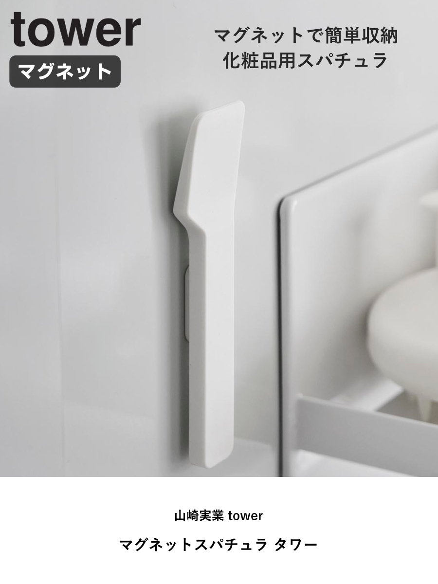 山崎実業 tower マグネットスパチュラ タワー ( 4903208107297 タワーシリーズ スパチュラ 磁石 浮かせる収納 浮かせて収納 衛生的 マグネット 美容クリーム 美容 化粧品 クリーム コスメ へら ヘラ ) 【ホワイト】