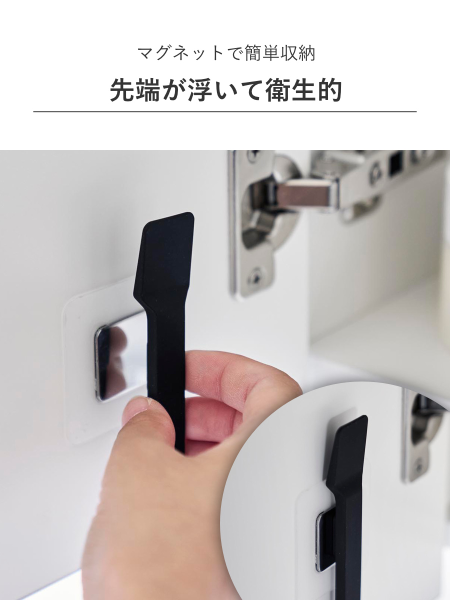 マグネットで簡単に収納できる化粧品用スパチュラです。先端が浮く構造のため、壁面に触れにくく衛生的。使いたいときにすぐ手に取ることができ、毎日のスキンケアを快適にしてくれる便利なアイテムです。