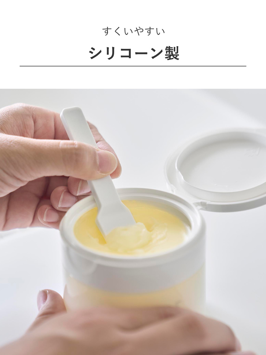 やわらかなシリコーン製なので、クリームやジェルがすくいやすいです。容器を傷つけにくく、指を使わずに使えるので、清潔にお使いいただけます。