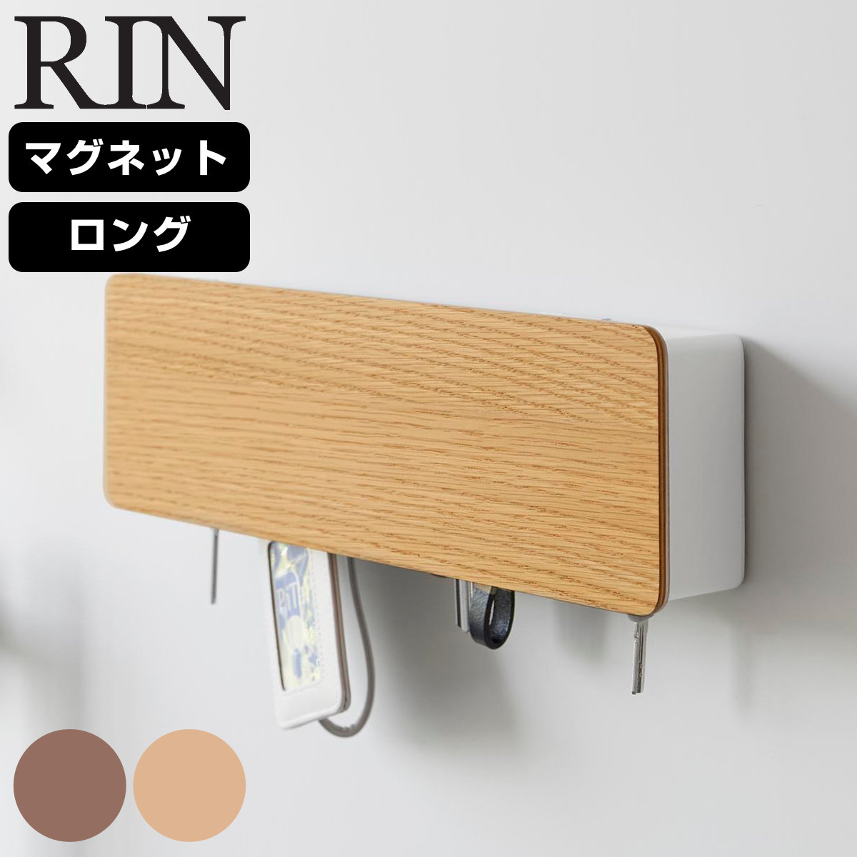 山崎実業 RIN 壁付けキーフック ロング リン ( 4903208106085 リンシリーズ キーフック カギ 鍵置き キーボックス 玄関 収納 扉 鍵収納 玄関収納 キー ホルダー 鍵掛け フック 鍵 かぎ 8連 8連フック ) 【ナチュラル】
