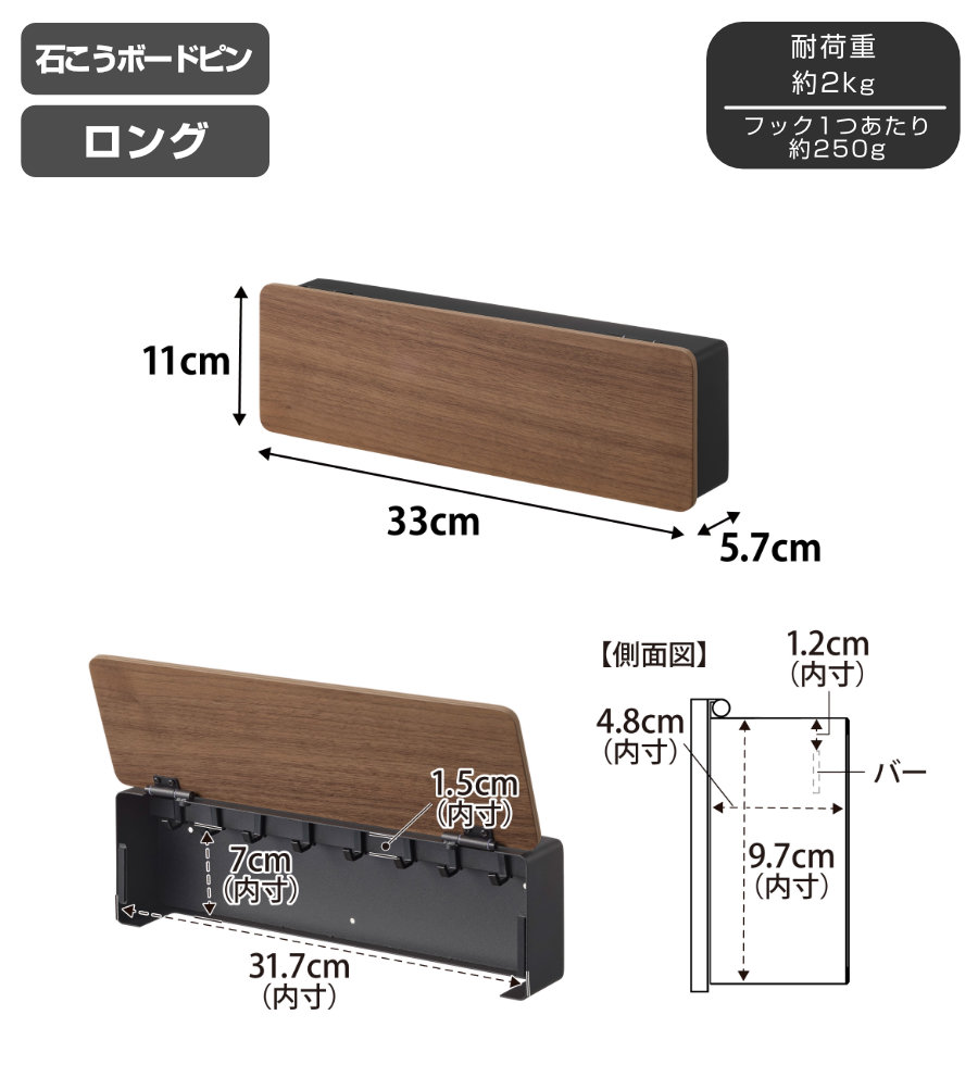 | 耐荷重 | 2kg(但しフック1つあたり:250g)(静止荷重) |