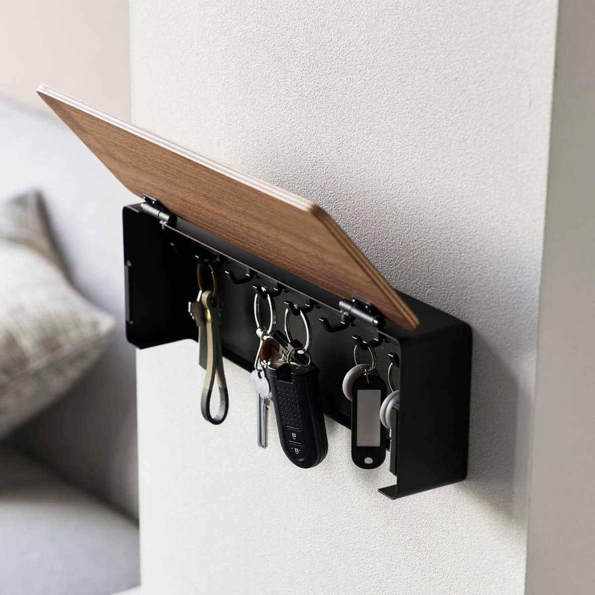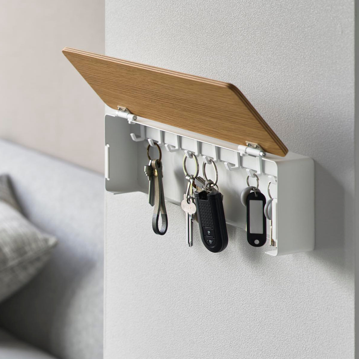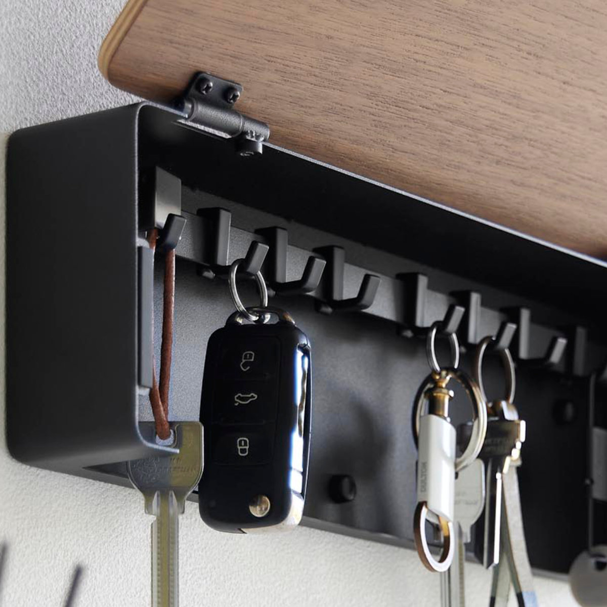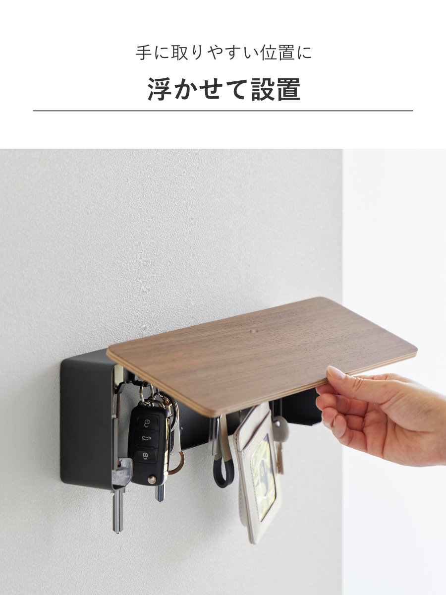 手に取りやすい位置に浮かせて設置できるので、鍵の定位置が決まり、玄関まわりをすっきり整います。