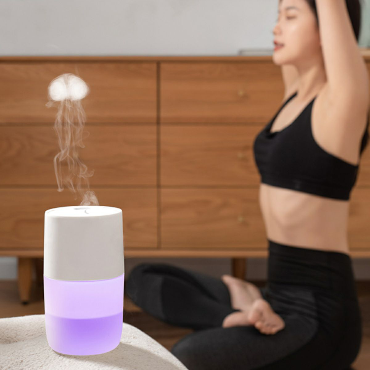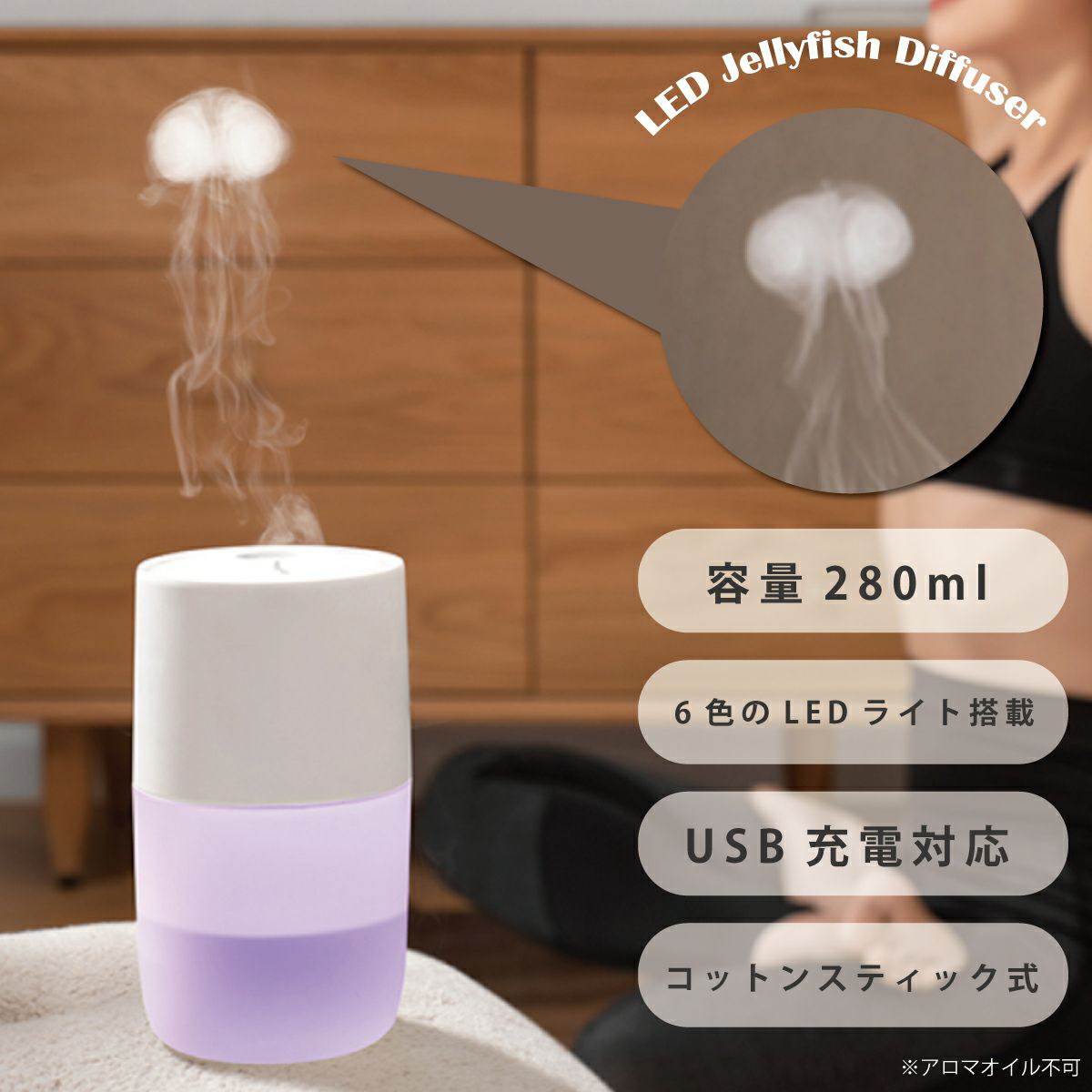 加湿器 持ち運び ジェリーフィッシュ ディフューザー LED クラゲ 照明 ライト USB充電 ( レッドワークス 卓上 充電式 LEDライト 280ml 2種類加湿モード 保湿 オフィス 会社 デスクワーク 車内 乾燥 対策 ) 【マーブル】