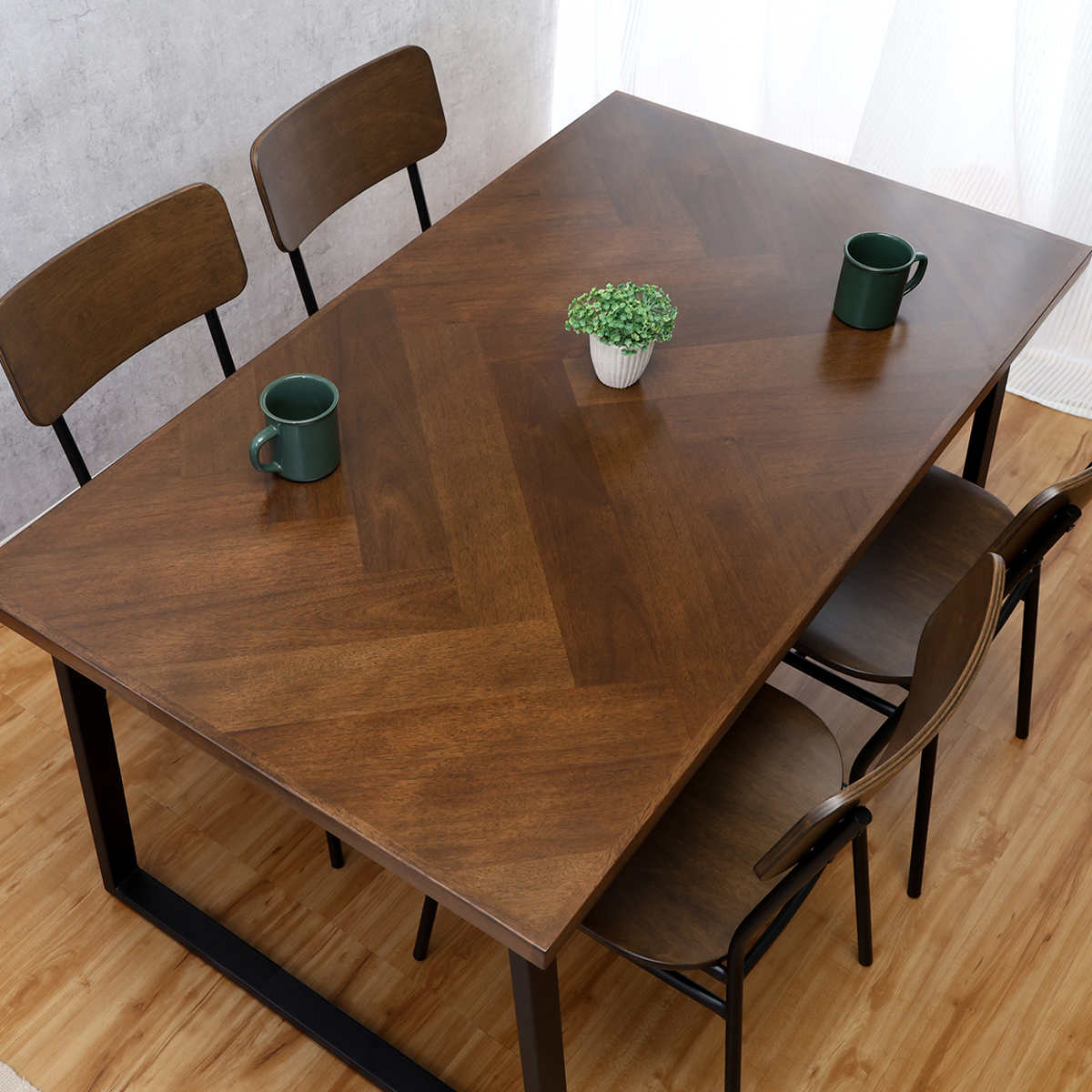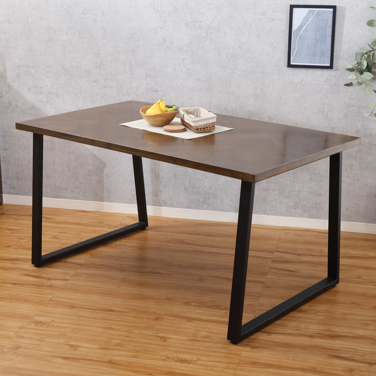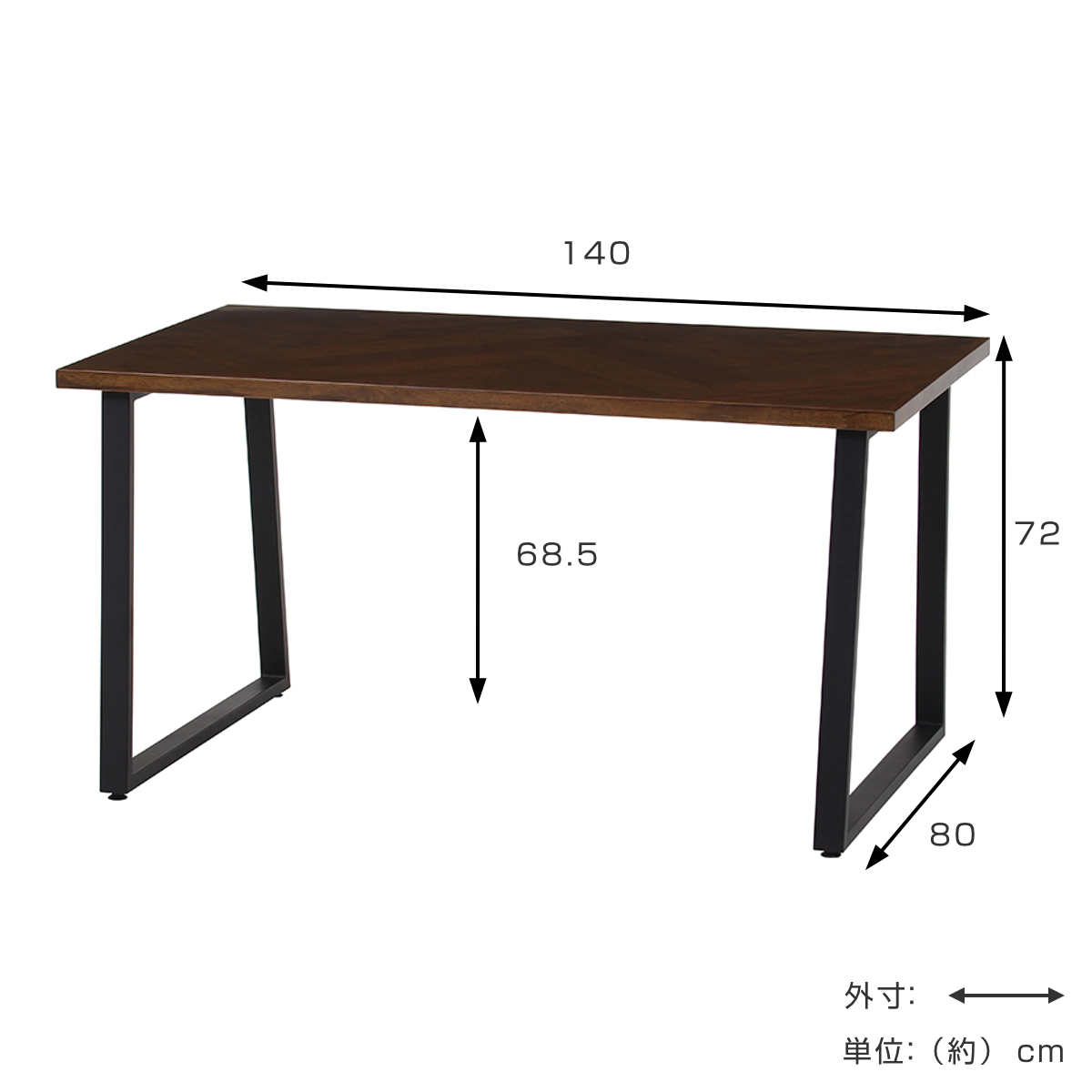 ダイニングテーブル 幅140cm コの字脚 DECO ( テーブル 食卓テーブル 4人用 机 長方形 奥行80cm 食卓机 ヘリンボーン柄 木目調 ダイニング 食卓 スチール脚 アジャスター付き )