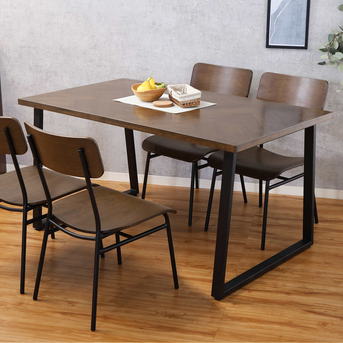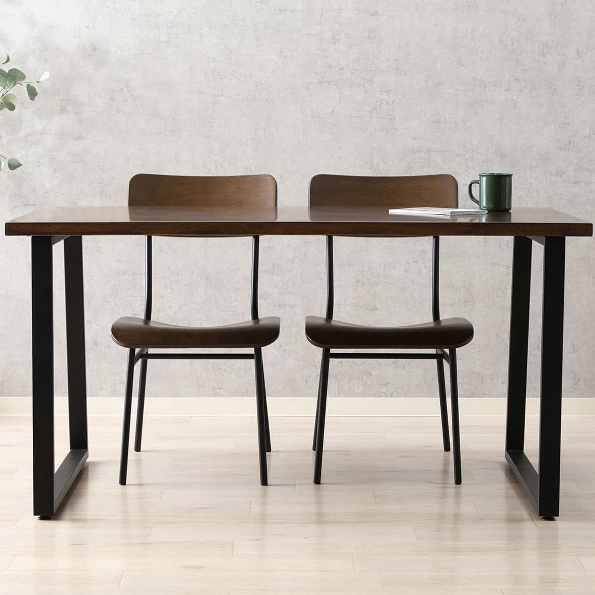 深みのあるブラウン天板が印象的なヴィンテージテイストのダイニングテーブル。幅140cmで4人でもゆったり使えるサイズ感と、木×スチールの異素材デザインが、大人のカフェ空間を演出します。