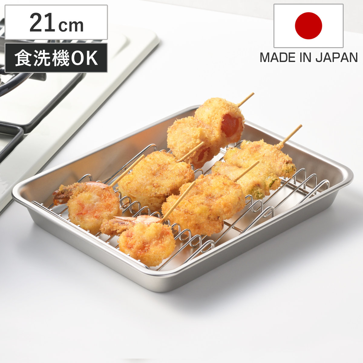 バット用アミ 油切り名人 波型バットアミ 21枚取り 日本製 ( 網 アミ 油切り バット用網 料理 調理 下ごしらえ 水切り 油こし 揚げ物 天ぷら あみ 斜め ステンレス製 使いやすい 丈夫 )