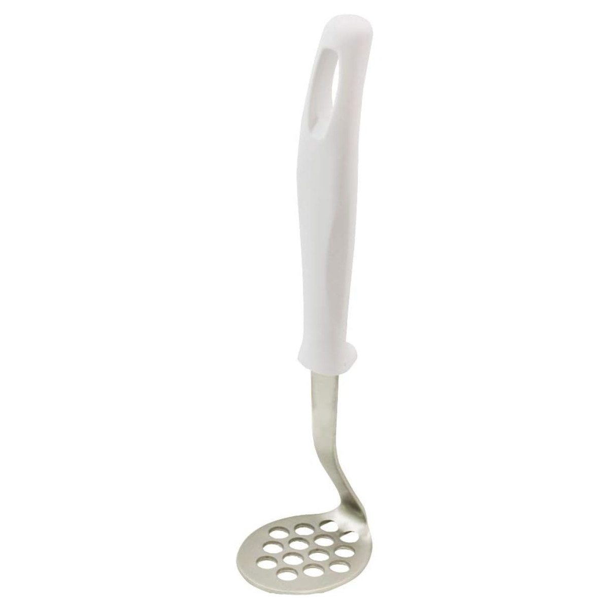 シンプルで飽きのこないベーシックなデザインの小さめサイズのマッシャーです。しっかり握れて手にフィットするハンドル形状です。じゃがいもやかぼちゃのマッシュ、ゆで野菜のつぶし作業など、少量調理にちょうどよいサイズです。