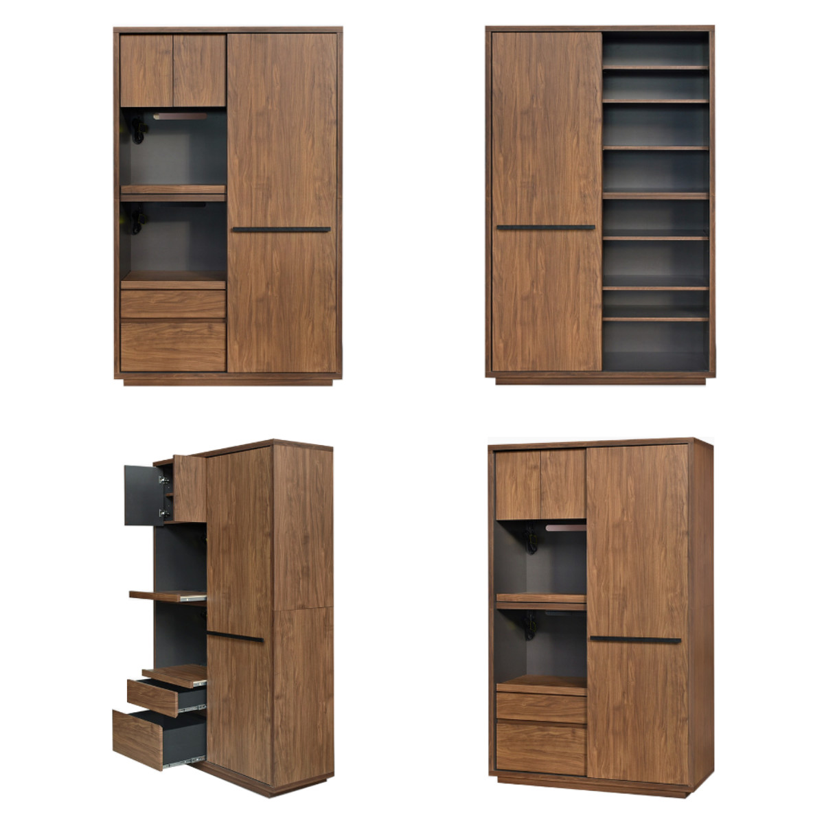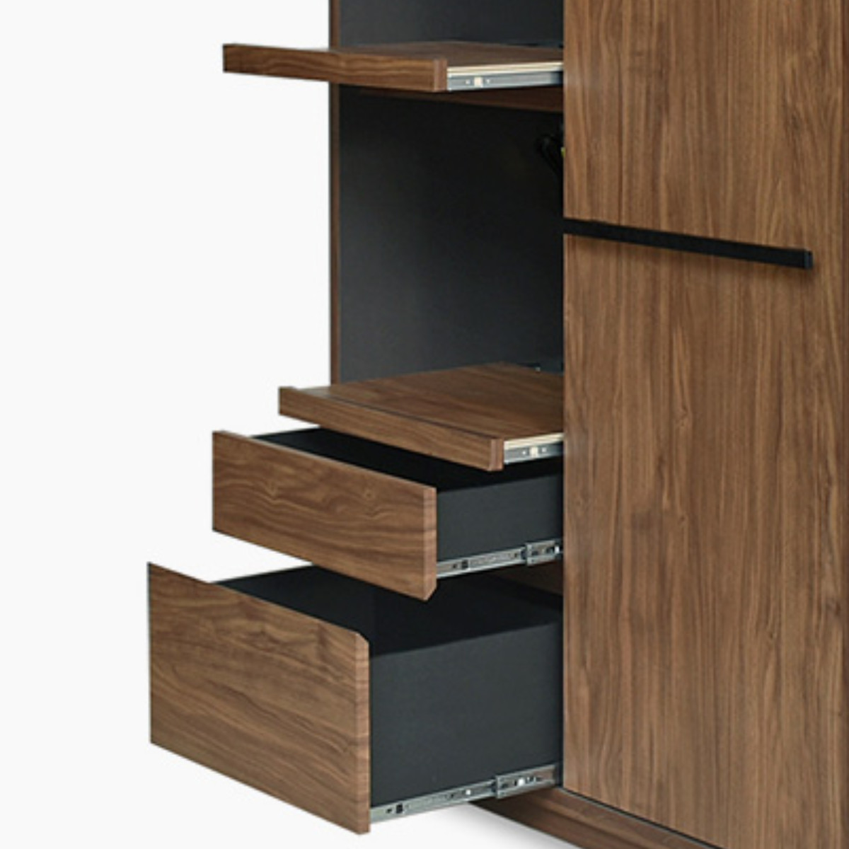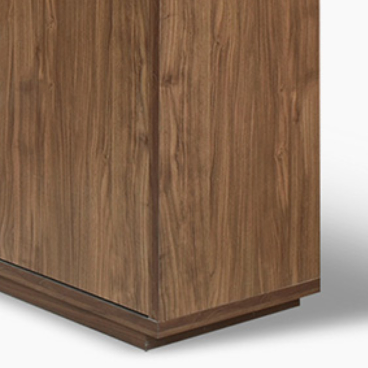 シンプルなフォルムに、モダンな印象のキッチンボードです。ウォールナットカラーの深みと美しい木目柄が、リラックスした落ち着きのある空間を演出します。