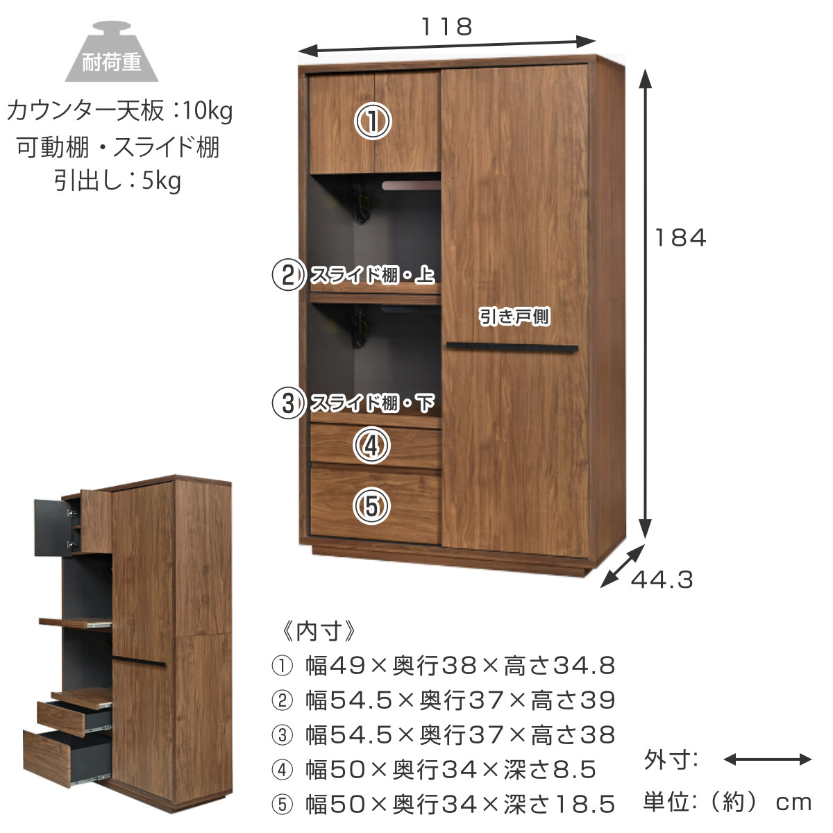 | サイズ | 約 幅118×奥行44.3×高さ184(cm) |