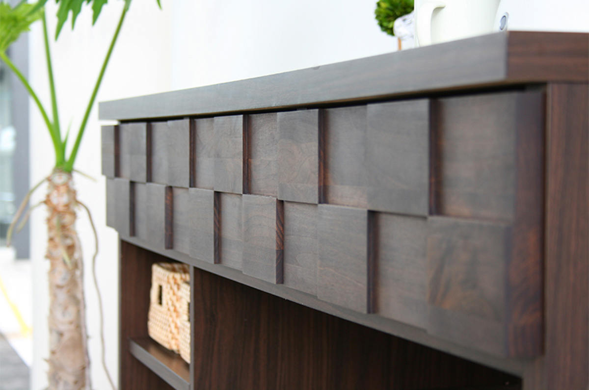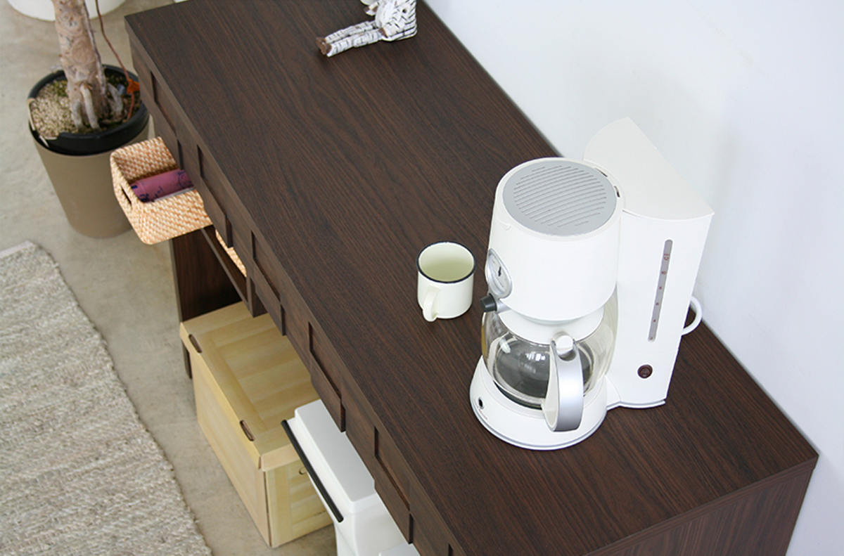| 材質 | 天板:強化紙 引出し前板:アルダー無垢材(オイル塗装) 本体:プリント紙 |