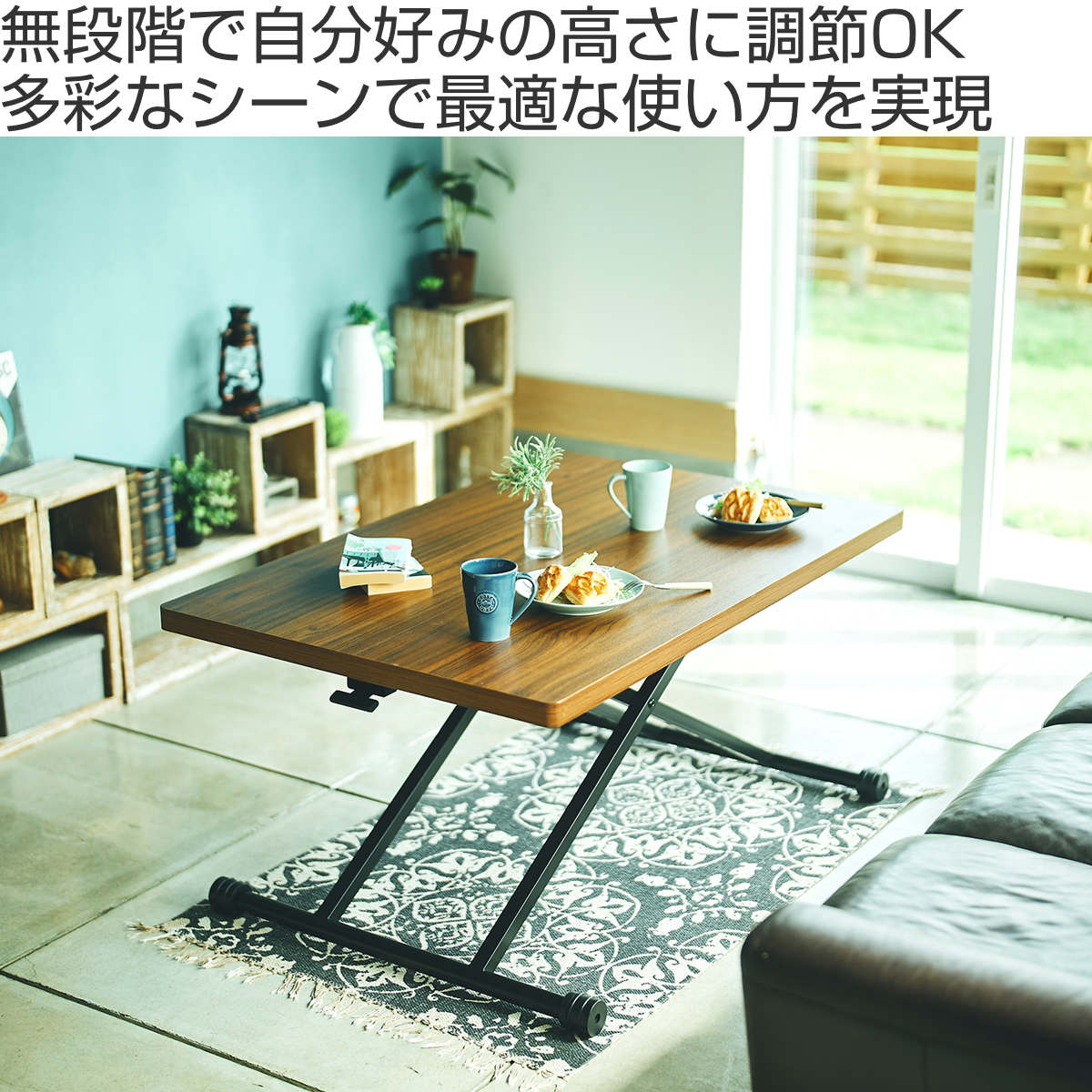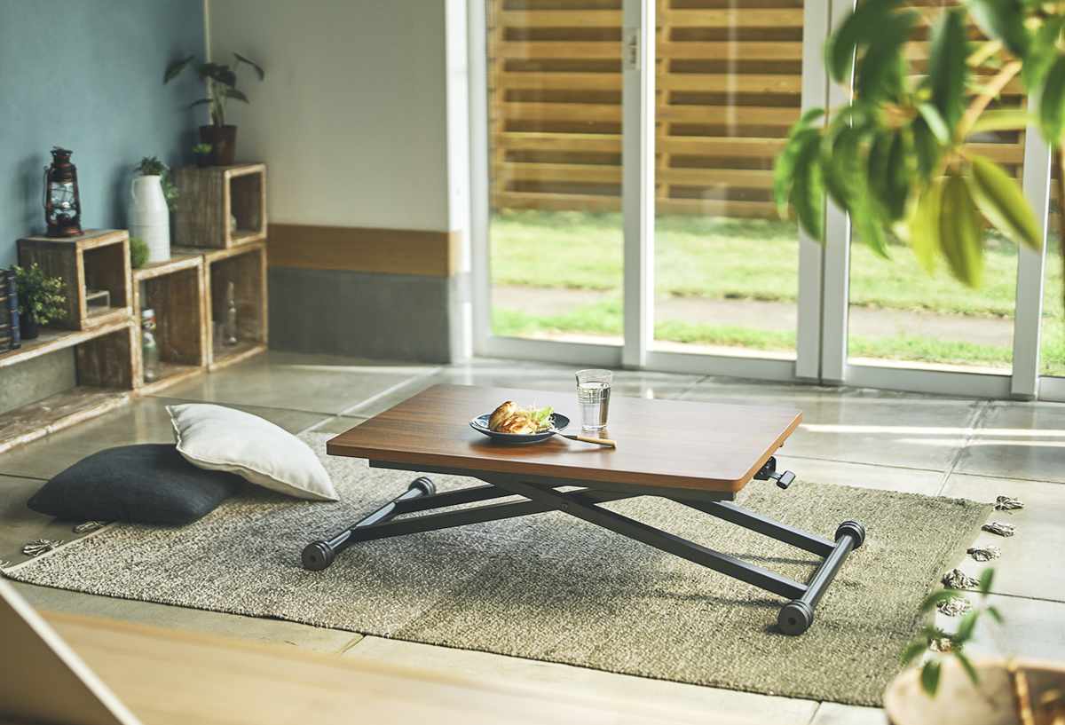 無段階で自分好みの高さに調節できるリフトテーブル 幅90cm