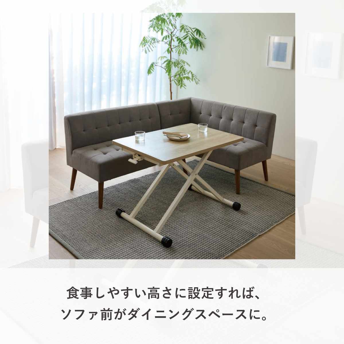 ●食事をしやすい高さにすれば、ソファ前がダイニングスペースに。