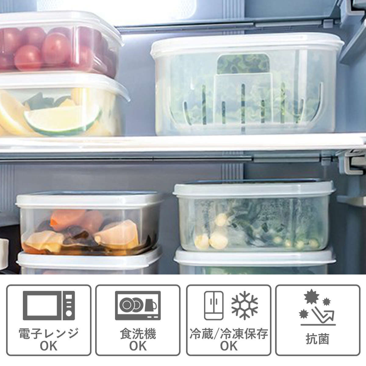 ●食材を洗ってそのまま水切りしながら保存できる便利なザル付きです。