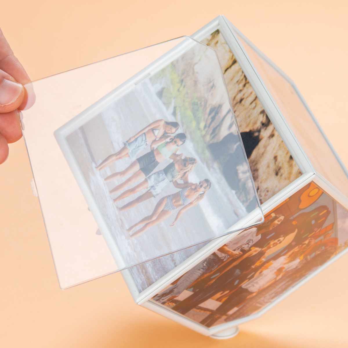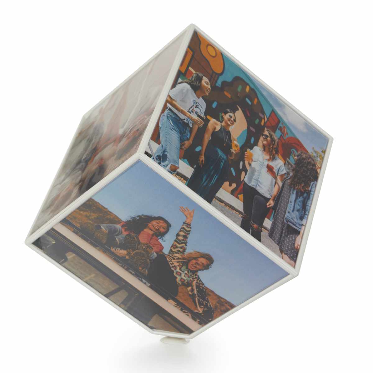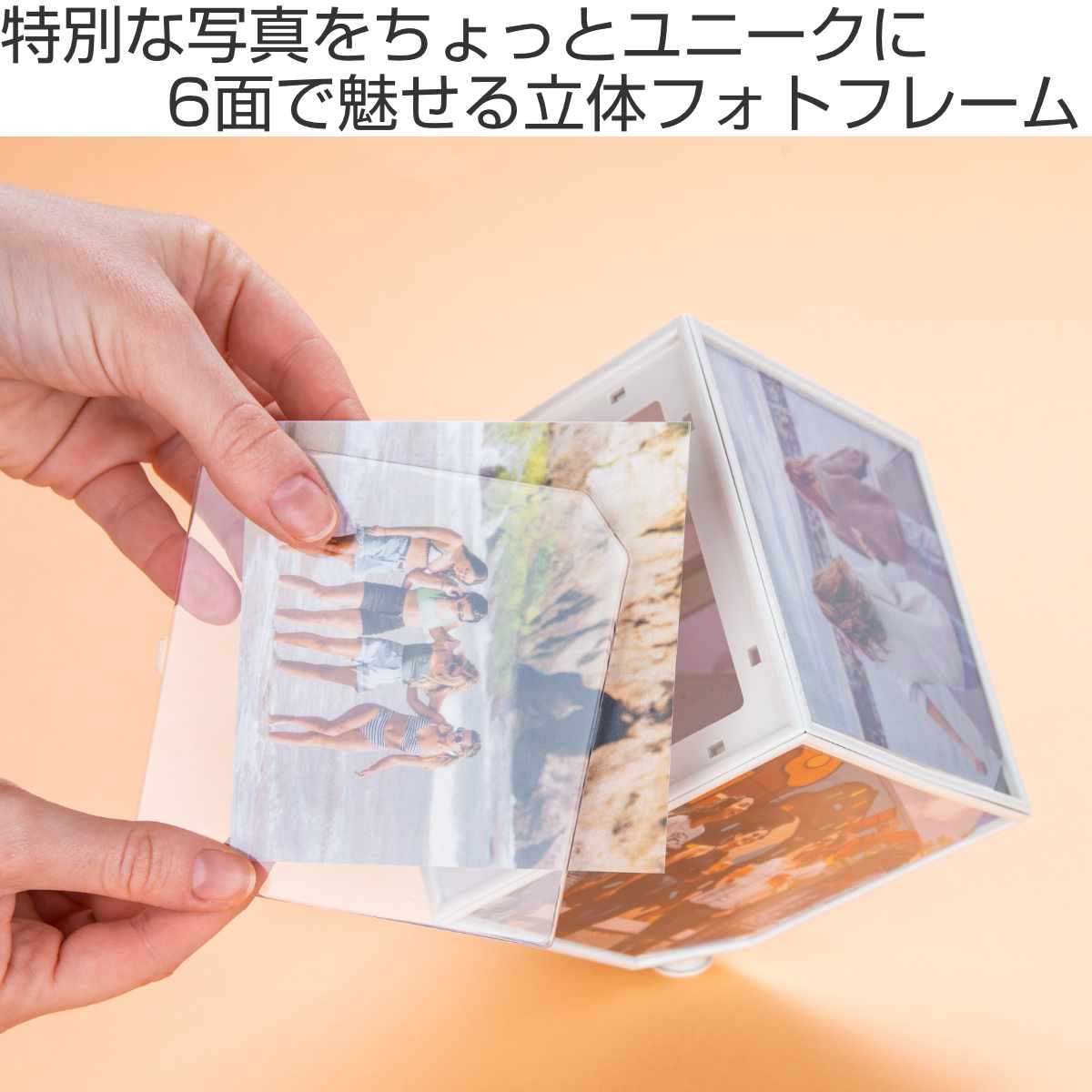 6枚の写真を回転させて楽しめるキューブ型のフォトフレームです。家族写真や旅の思い出をより印象的に演出できます