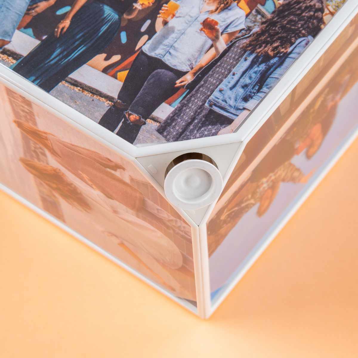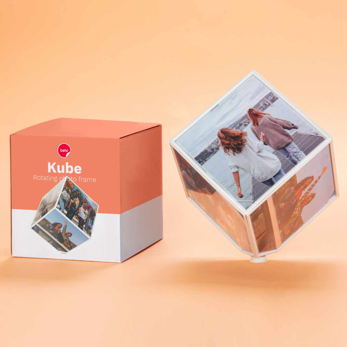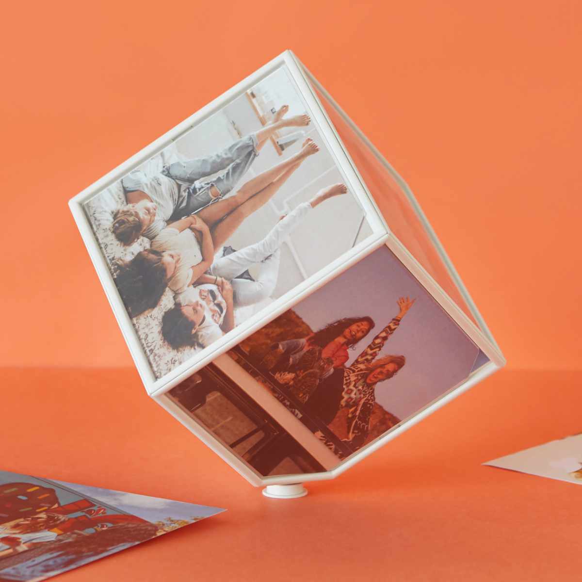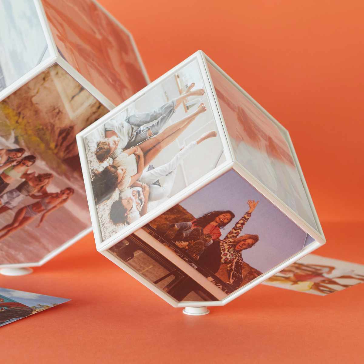 6枚の写真を回転させて楽しめるキューブ型のフォトフレームです。家族写真や旅の思い出をより印象的に演出できます
