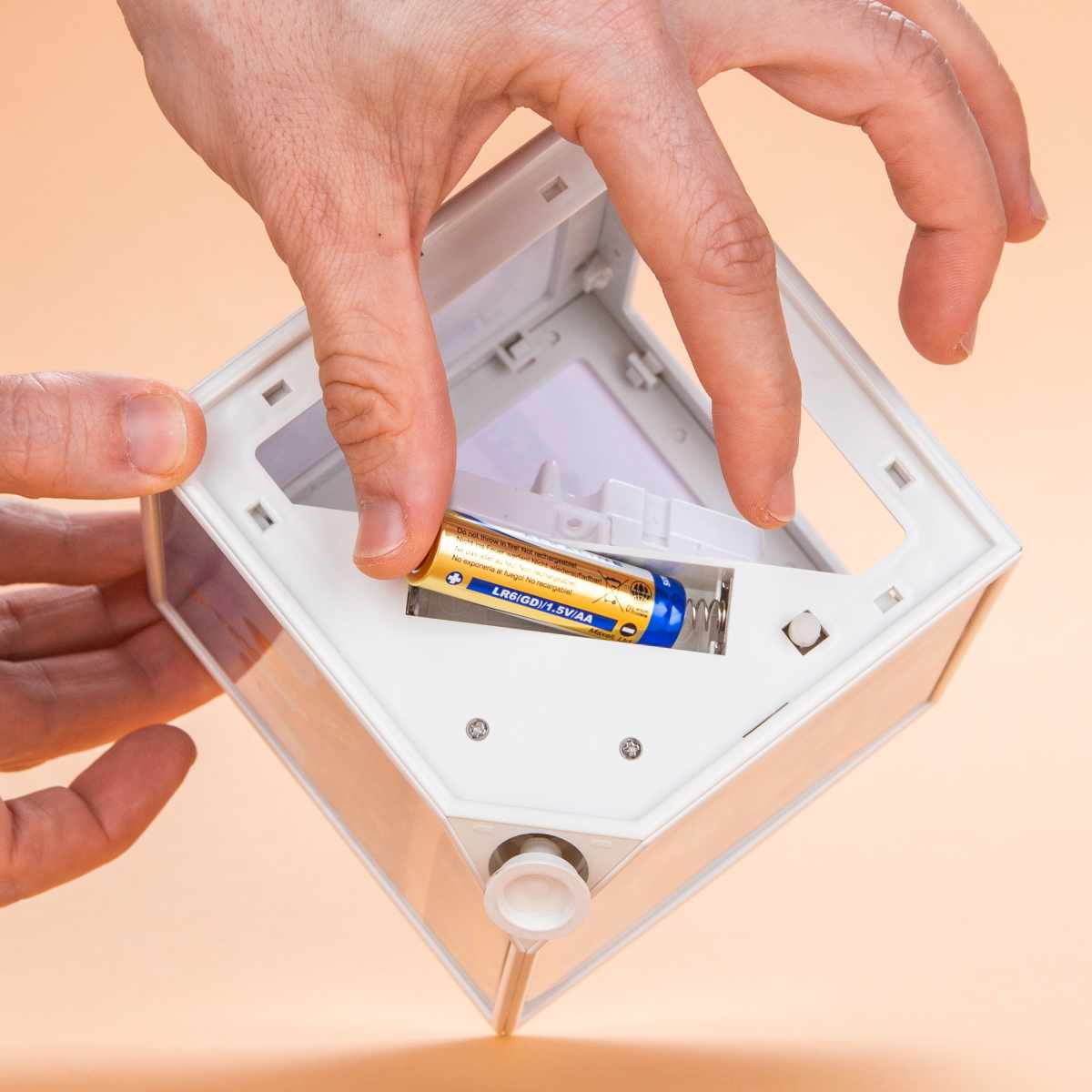 スイッチを入れると電池でゆっくり回転しながら写真が切り替わり、見るたびに異なる思い出を楽しめます。置き場所を選ばずインテリアにさりげなく馴染みます。