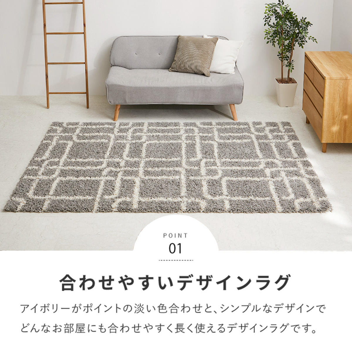 広めのお部屋でもゆったりとお使いいただけます。ソファーやテーブルともコーディネートしやすく、ラグの上でのんびり寝転がることのできる大きめサイズです。