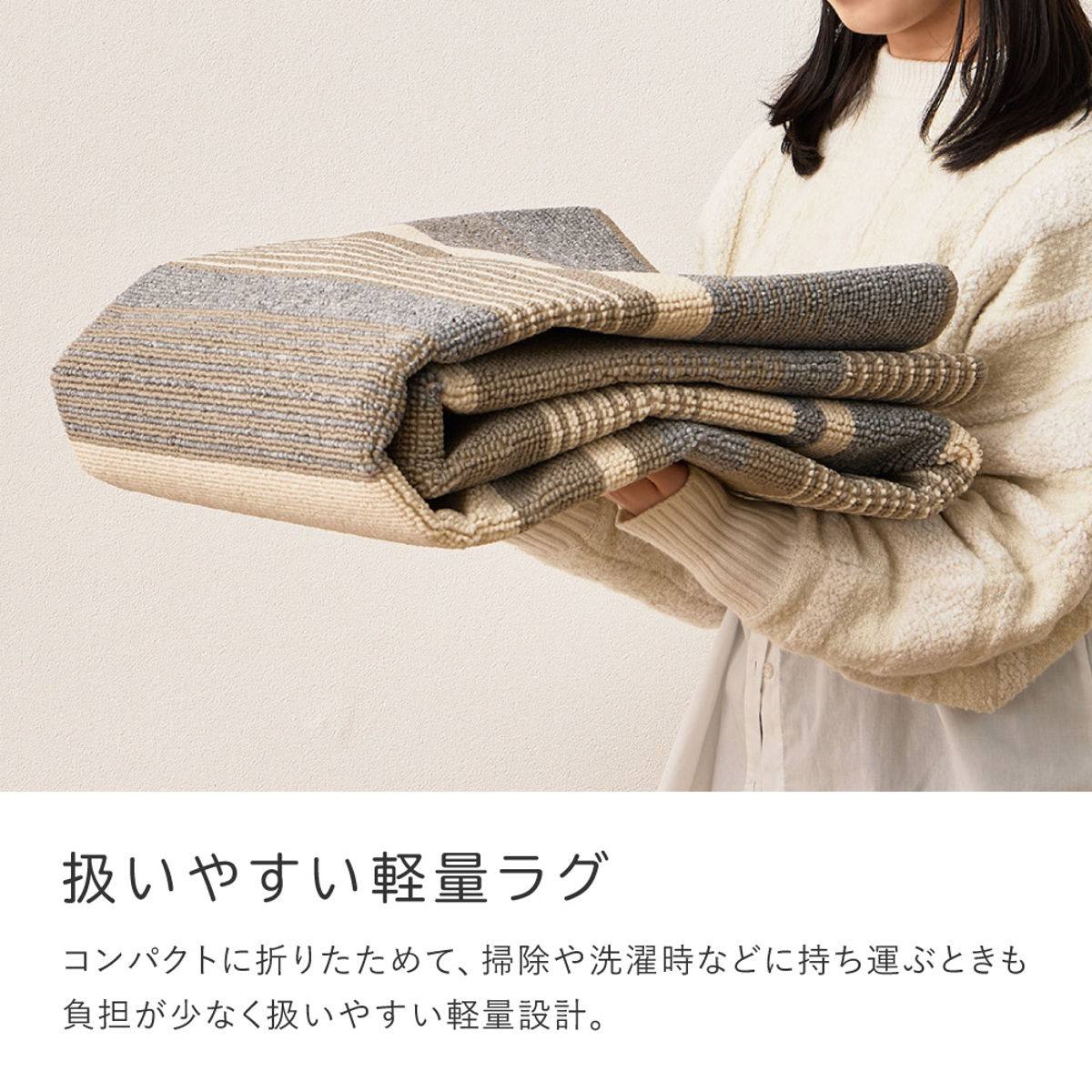 ラグ ボーダー柄 洗える 軽量 速乾ラグ フィン 130x185cm ( カーペット 絨毯 マット ラグマット 長方形 じゅうたん 床暖対応 畳める ホットカーペット 床暖 丸洗いストライプ コンパクト 折りたためる 洗濯できる 軽い 丈夫 ) 【グレー】
