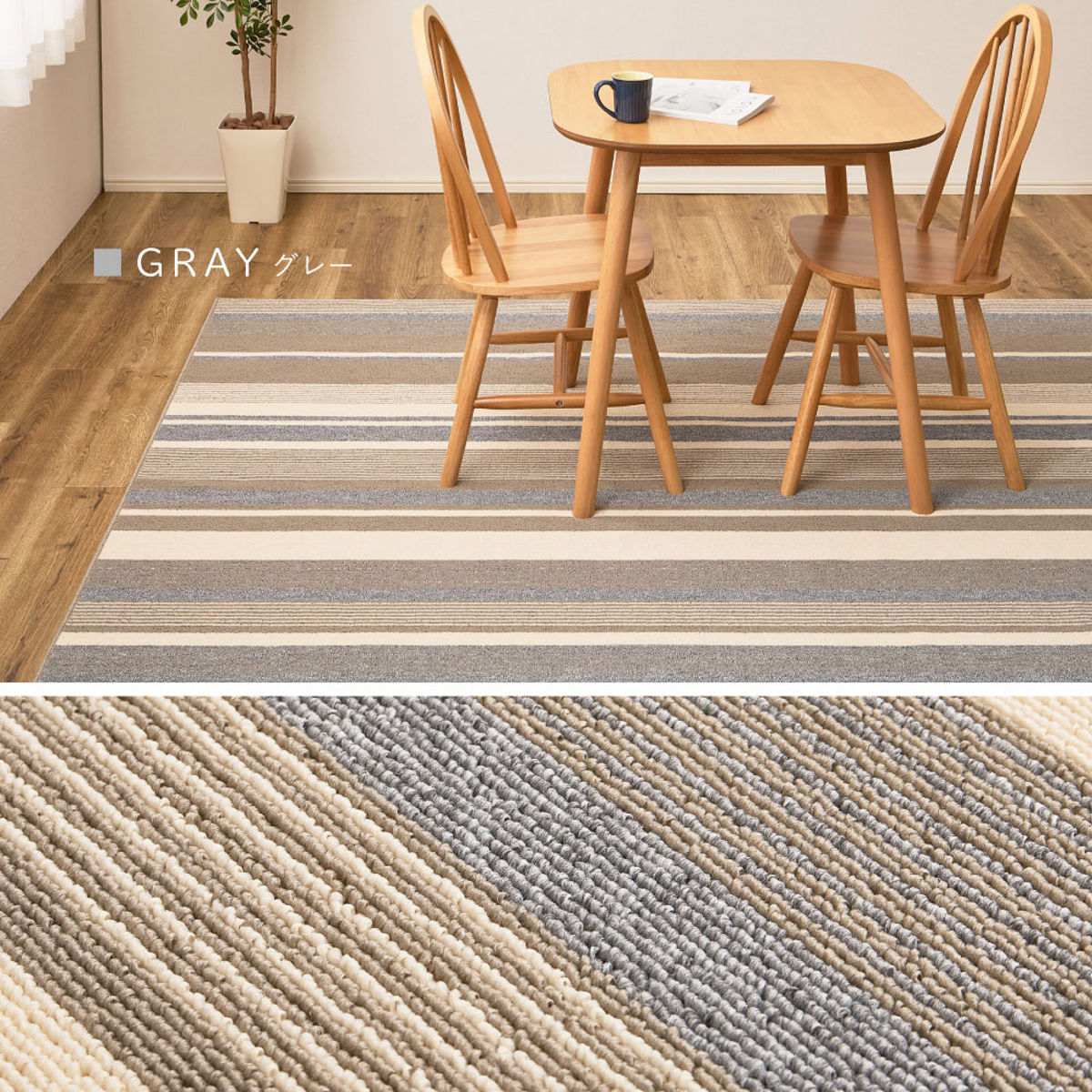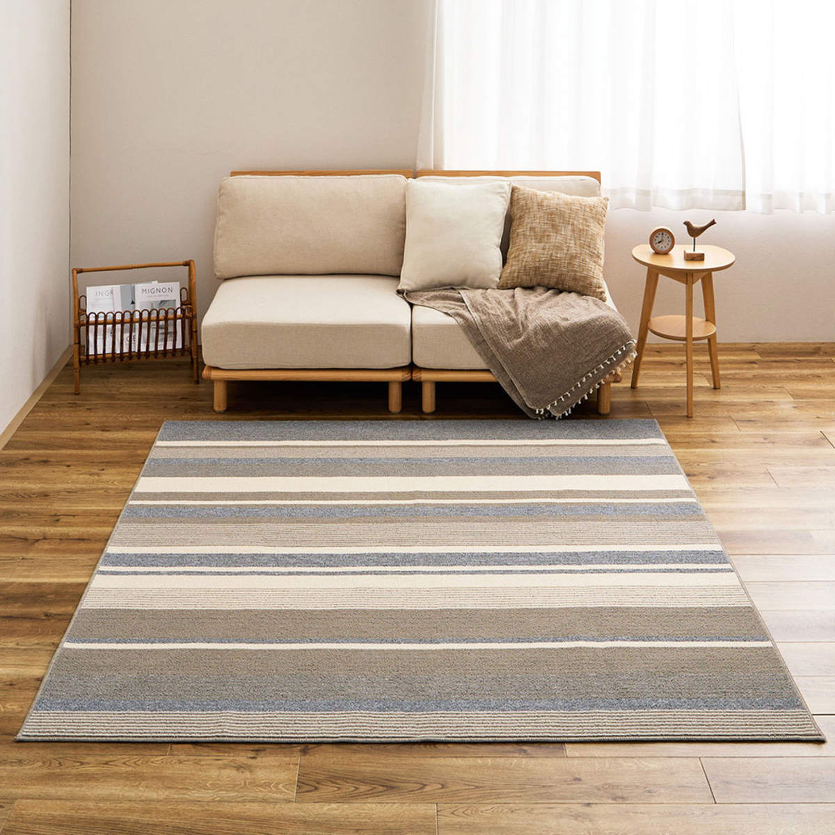 センターラグとしても使える正方形タイプで、ファミリーサイズのリビングにもちょうどいいサイズです。