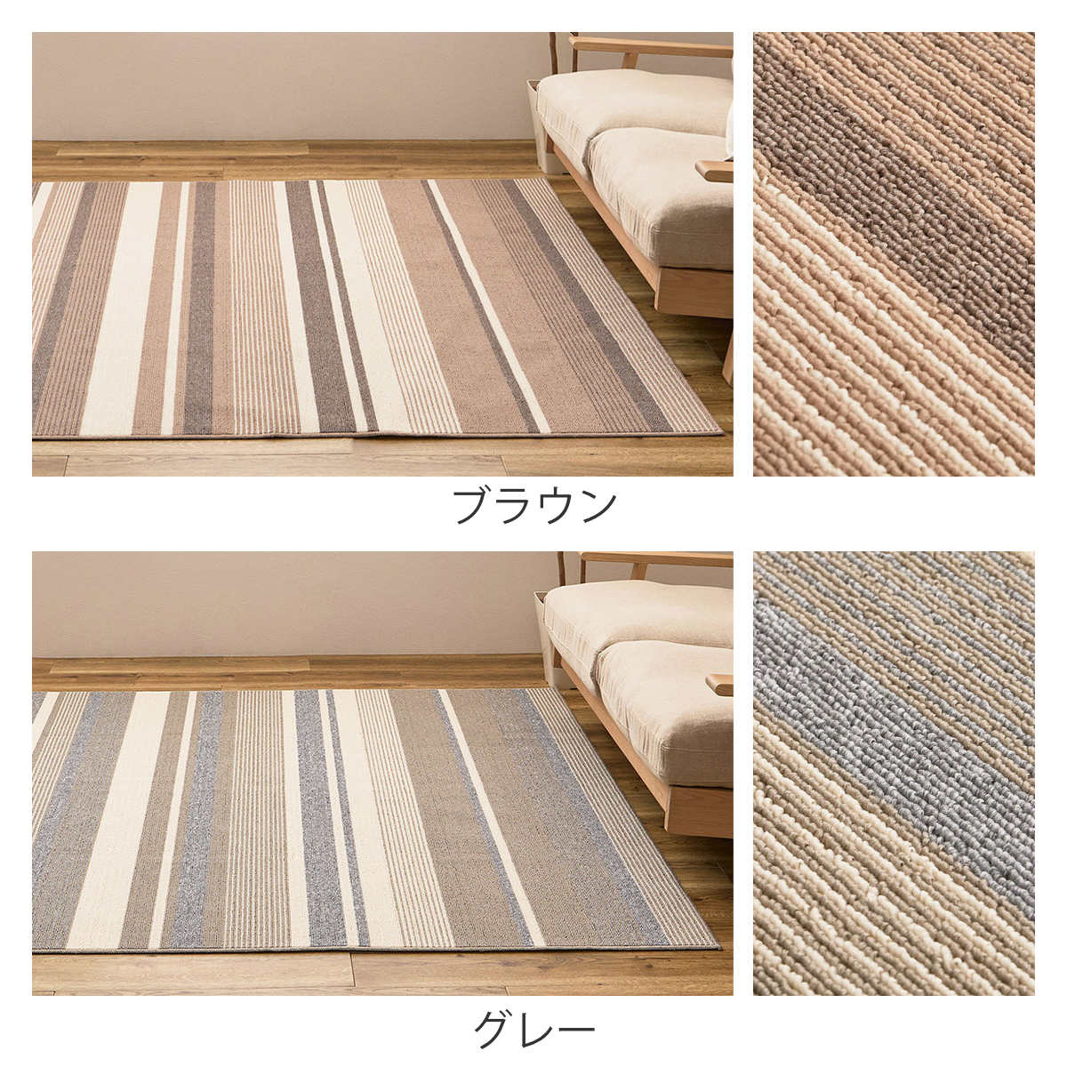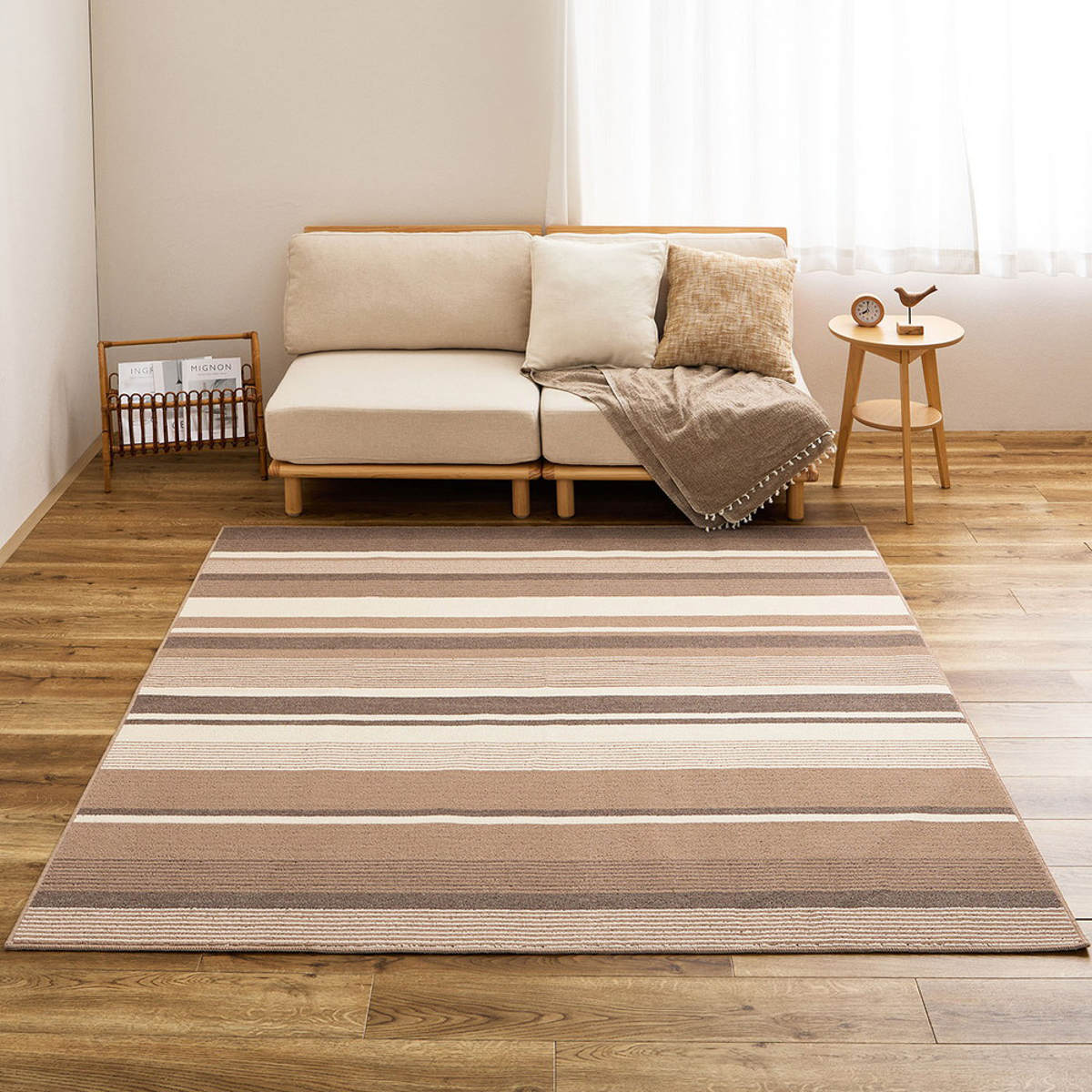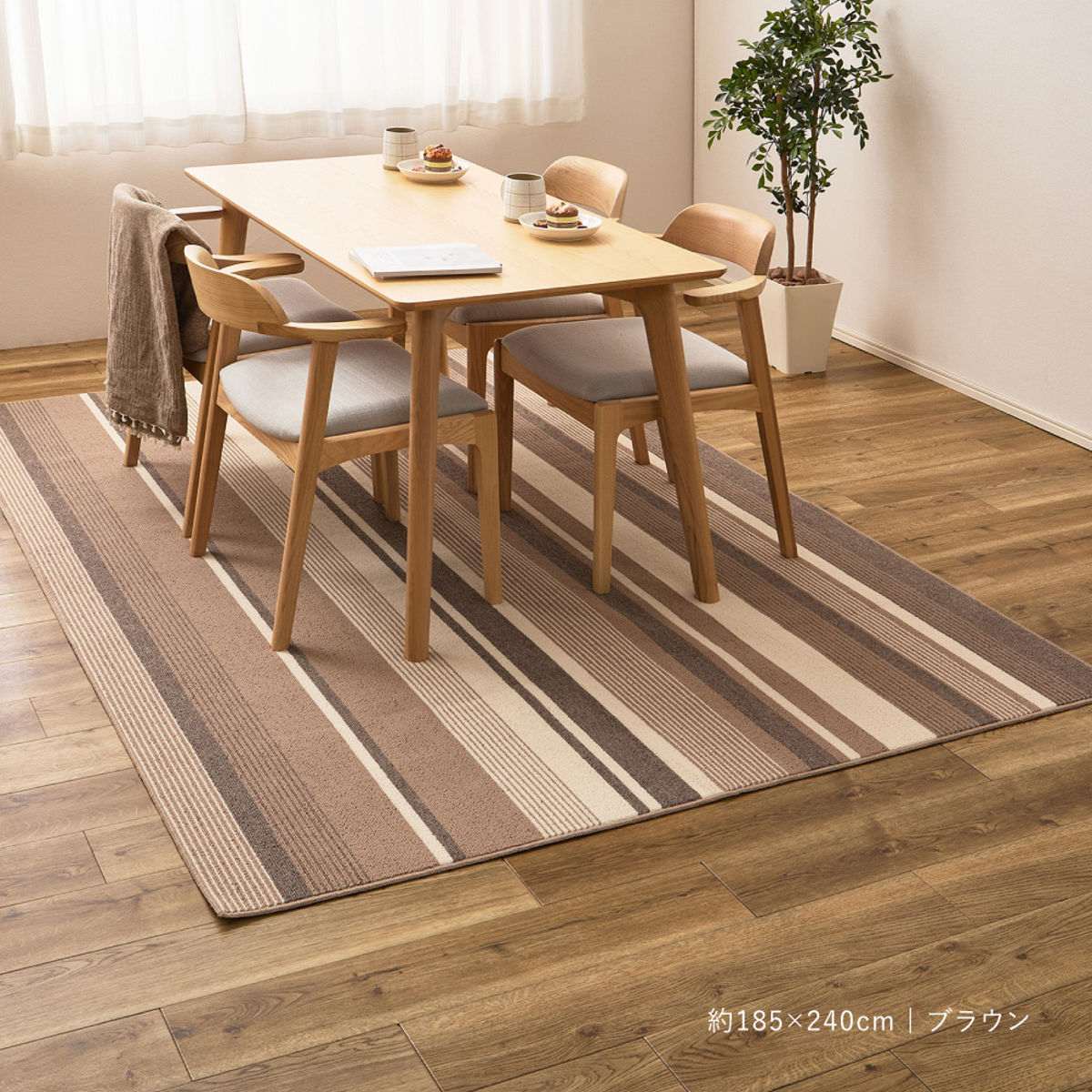 ラグ ボーダー柄 洗える 軽量 速乾ラグ フィン 185x185cm ( カーペット 絨毯 マット ラグマット 正方形 じゅうたん 床暖対応 畳める ホットカーペット 床暖 丸洗いストライプ コンパクト 折りたためる 洗濯できる 軽い 丈夫 ) 【ブラウン】