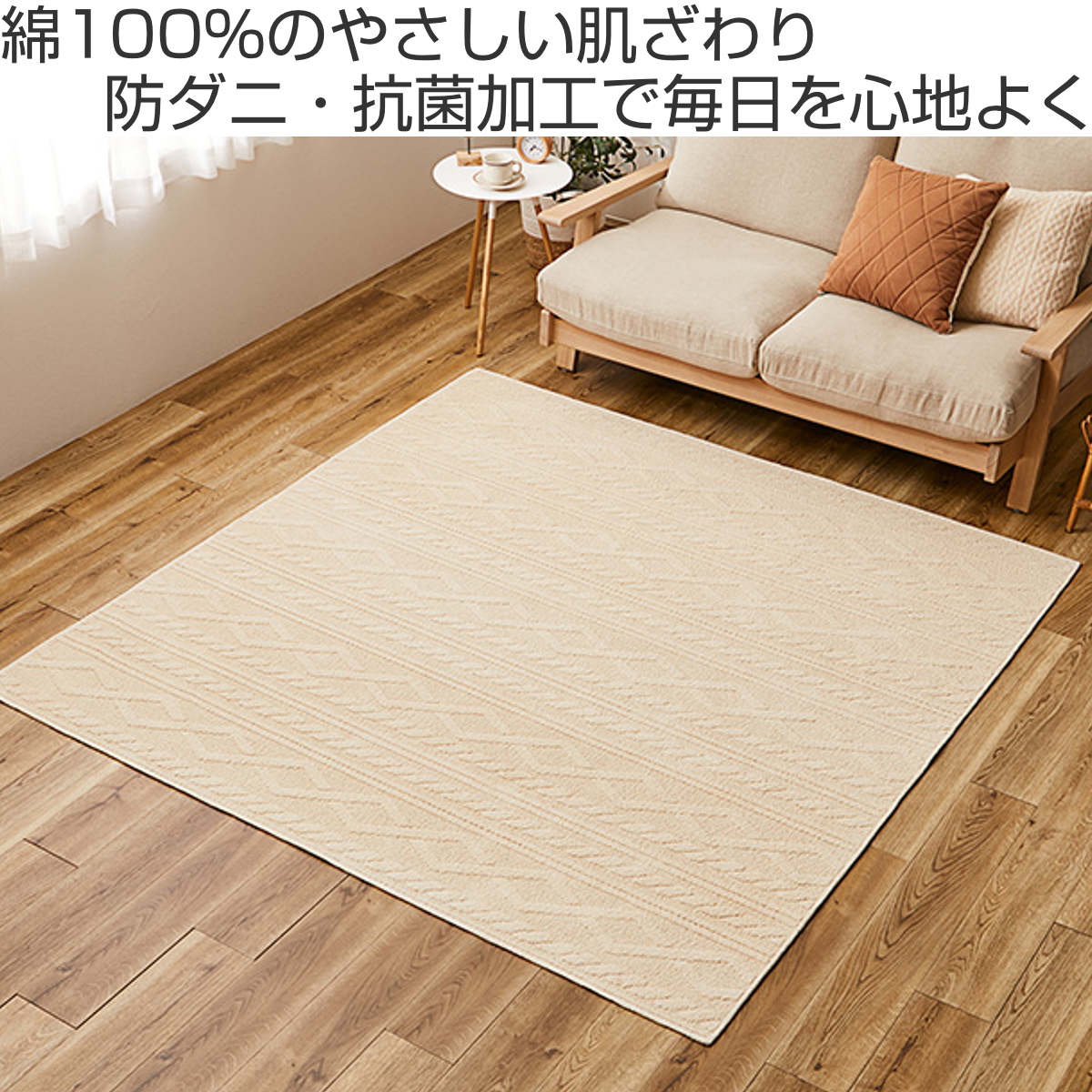 ラグ 綿100%のケーブルニット柄ラグ ナチュール 130x185cm ダイニング ( ラグマット マット カーペット 絨毯 じゅうたん 床暖対応 床暖 床暖房 ホットカーペット対応 防ダニ 抗菌 インテリア 洗える 洗濯できる )