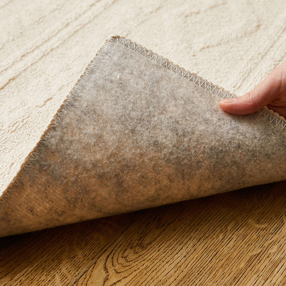 ラグの裏面には床への傷防止にもなる不織布に、滑り止め加工を施しているのでフローリングの上でもズレにくく安心です。ホットカーペットや床暖房にも対応しています。