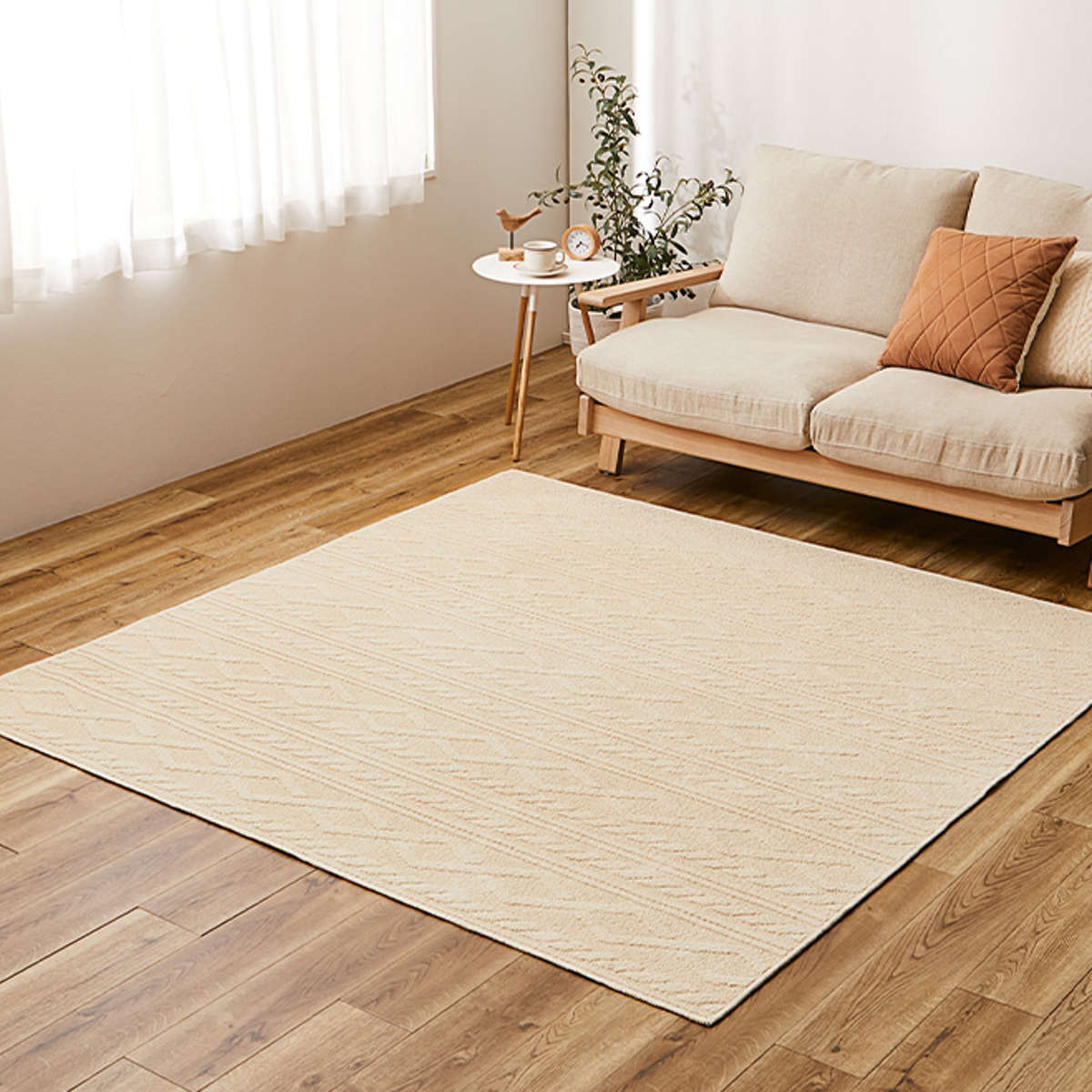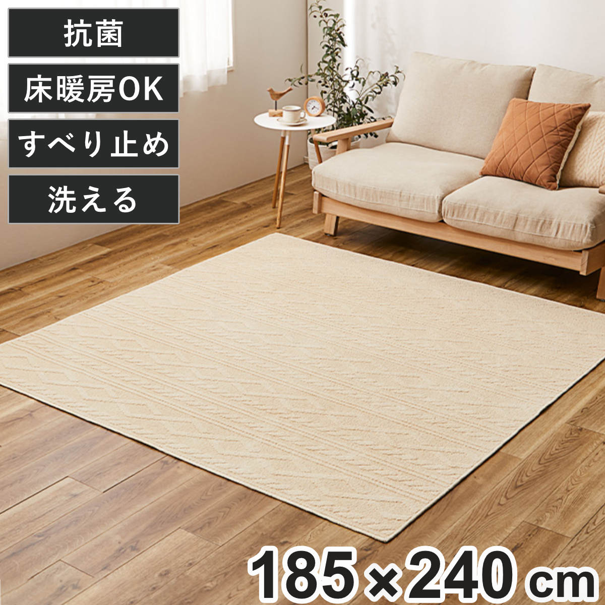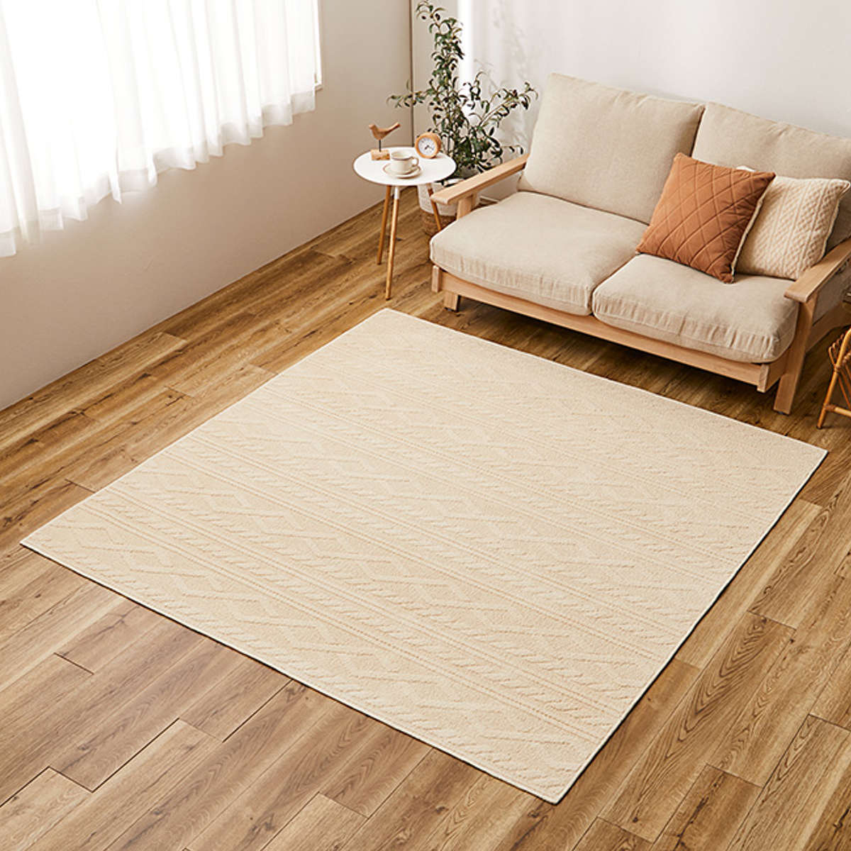 ラグ 綿100%のケーブルニット柄ラグ ナチュール 185x185cm ダイニング ( ラグマット マット カーペット 絨毯 じゅうたん 床暖対応 床暖 床暖房 ホットカーペット対応 防ダニ 抗菌 インテリア 洗える 洗濯できる )