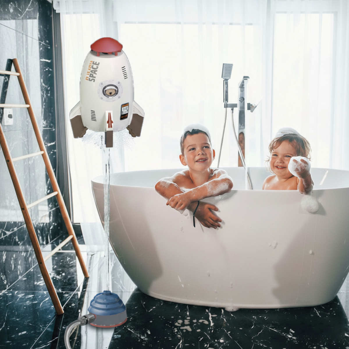 水をまきちらしてロケットが空に浮かぶ!