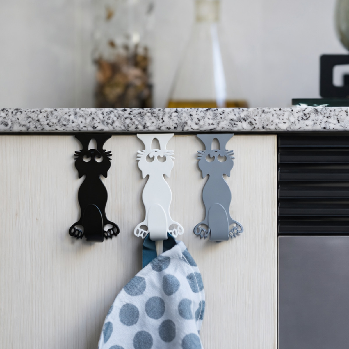 3匹の猫のかわいらしいシルエットが特徴のタオルフックです。タオルやミトンをサッと掛けられるので、キッチン周りをすっきり整理できます。