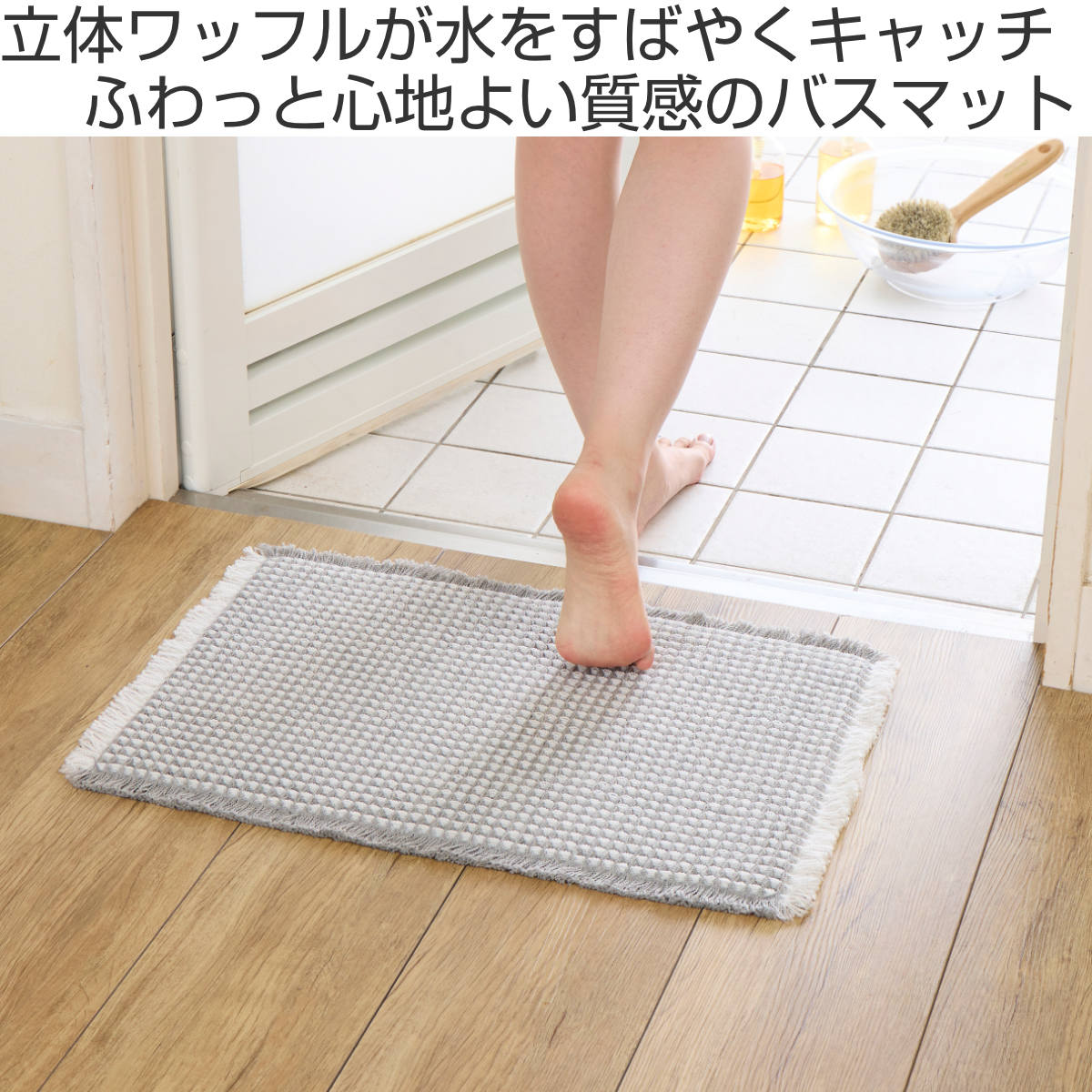 バスマット 40×60cm 厚手タイプ ワッフル織 ( お風呂マット 足拭きマット 抗菌 吸水 滑り止め 厚手 ワッフル 立体 洗える マット 浴室マット 40×60 丸洗い シンプル 無地 バスグッズ ) 【グレー】