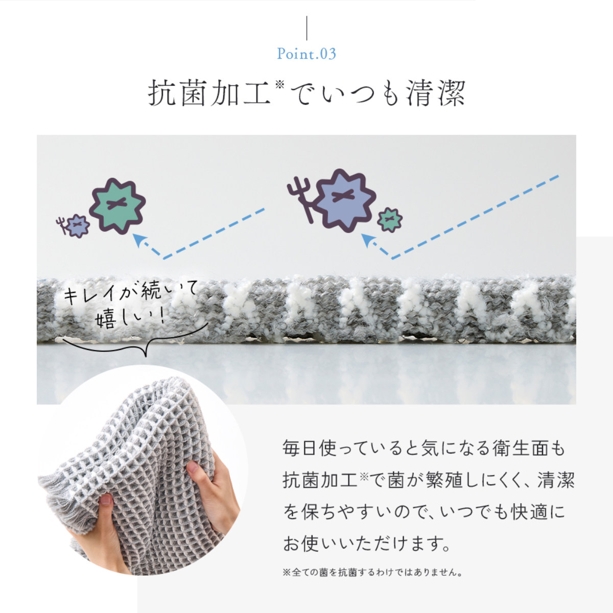 吸水・速乾・抗菌仕様なので、次に使う人が不快になりにくく衛生的です。
