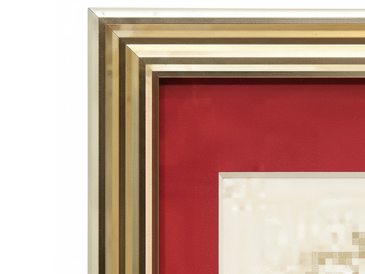 賞状・証書・免状におすすめの賞状額です。スエード調のマット紙を使用した上質感のあるデザインが、大切な受賞の証をより一層引き立て、空間に格調高い印象を与えます。軽量ながらしっかりとした作りで、長く美しく飾っていただけます。