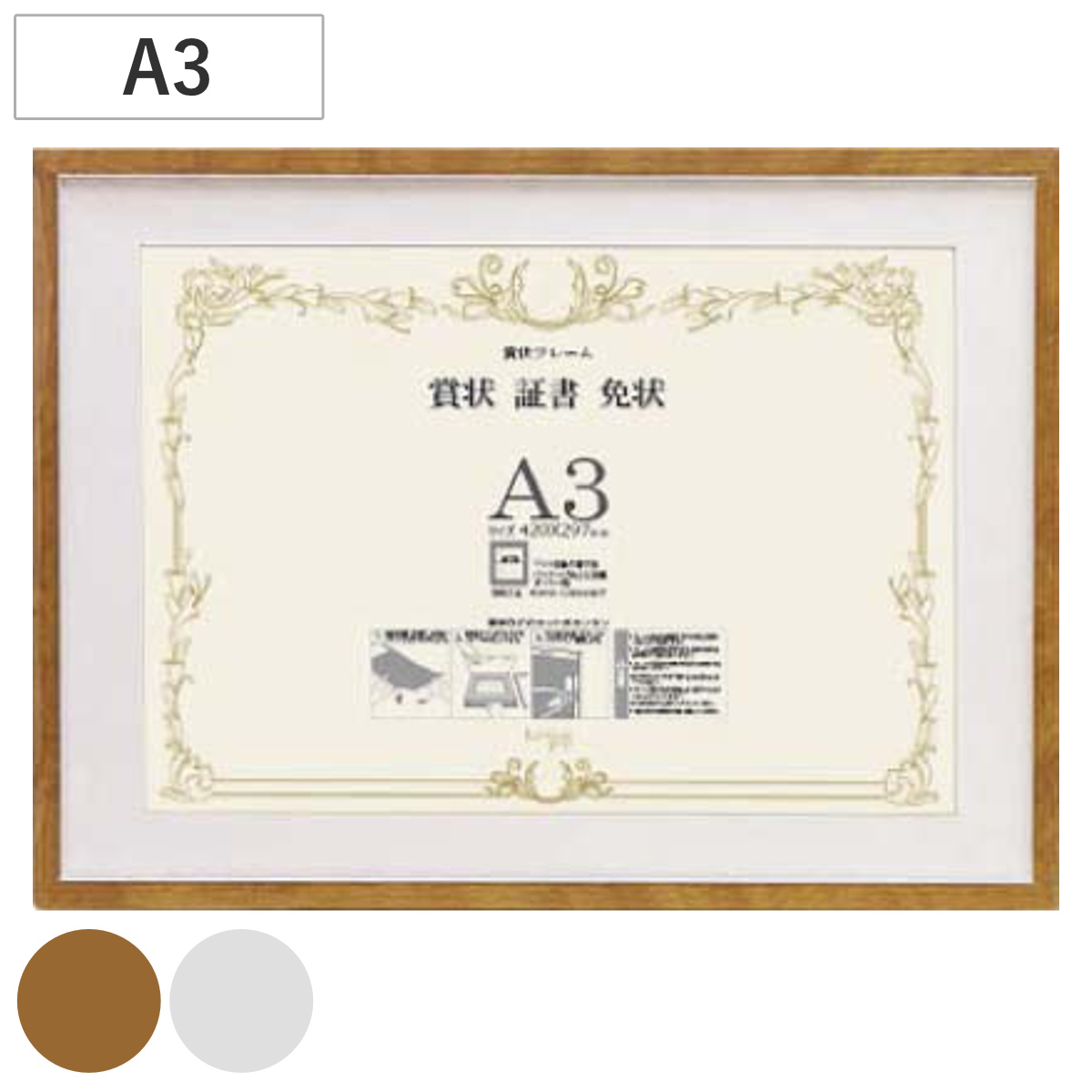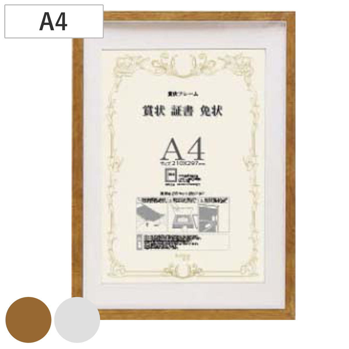 賞状・証書・免状におすすめの賞状額です。インテリアになじむスタンダードフレームで、台紙付きだから見栄えよく飾れます。スライド出し入れで簡単に賞状をセットできます。軽量ながらしっかりした作りで長く美しく飾れます。