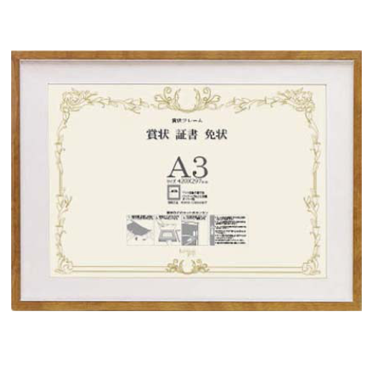 賞状・証書・免状におすすめの賞状額です。インテリアになじむスタンダードフレームで、台紙付きだから見栄えよく飾れます。スライド出し入れで簡単に賞状をセットできます。軽量ながらしっかりした作りで長く美しく飾れます。