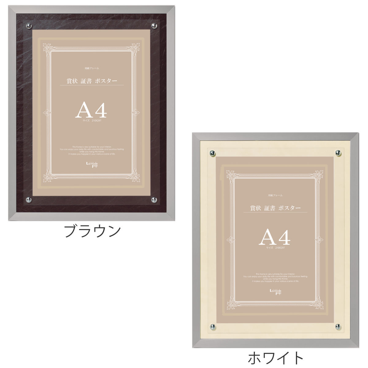 フレーム レザーボード P100 A4 ( 賞状 証書 作品 額 壁掛け 高級感 軽量 縦 おしゃれ アクリル レザー調 飾る インテリア 表彰状 卒業証書 認定証 許可証 免状 合皮 ポスター メニュー ) 【ブラウン】