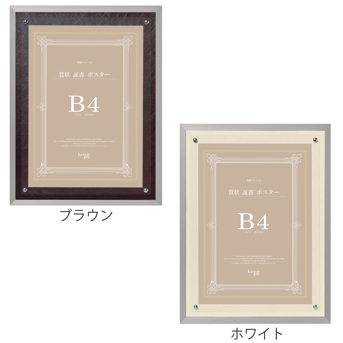 フレーム レザーボード P100 B4 ( 賞状 証書 作品 額 壁掛け 高級感 軽量 縦 おしゃれ アクリル レザー調 飾る インテリア 表彰状 卒業証書 認定証 許可証 免状 合皮 ポスター メニュー ) 【ブラウン】のレビュー