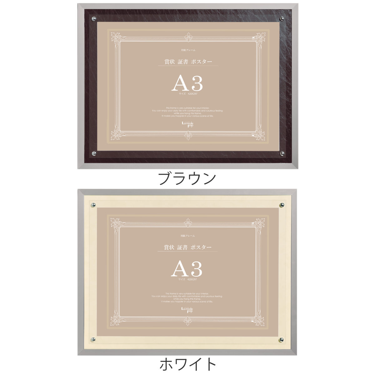 フレーム レザーボード P100 A3 ( 賞状 証書 作品 額 壁掛け 高級感 軽量 横 おしゃれ アクリル レザー調 飾る インテリア 表彰状 卒業証書 認定証 許可証 免状 合皮 ポスター メニュー ) 【ブラウン】