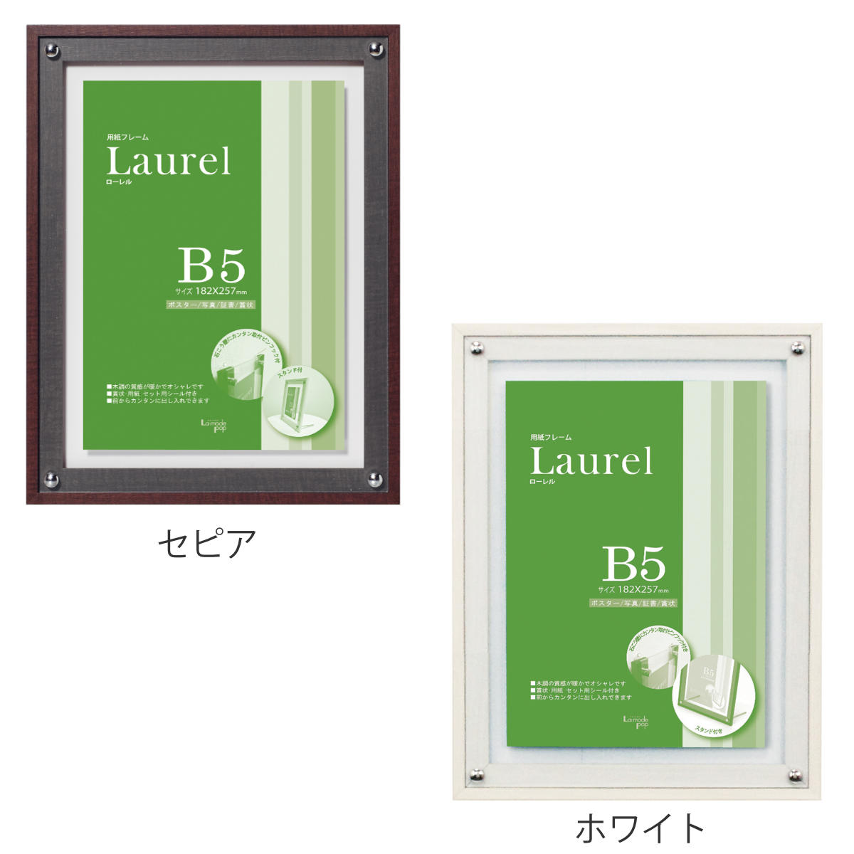 アクリルフレーム ローレル P105 B5 インテリアフレーム 額縁 ( フレーム 額 ポスター 賞状 写真 作品 スタンド 壁掛け 木製 アクリル おしゃれ 飾る インテリア 証書 表彰状 卒業証書 認定証 許可証 免状 メニュー ) 【セピア】
