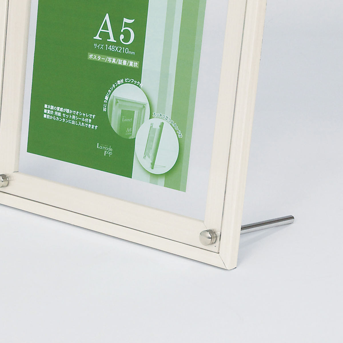 ●付属スタンド付きで壁掛けと卓上の2WAYで飾れます。