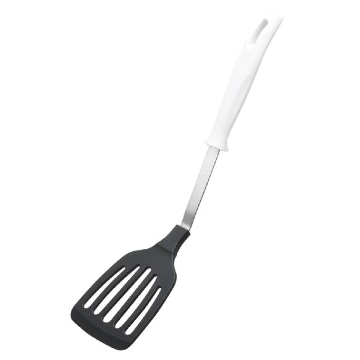 耐熱温度が高く、フッ素加工のフライパンを傷つけずに使えるナイロン製ターナーです。しっかり握れて持ちやすい形状のハンドルで、卵料理や炒め物、焼き魚など幅広いメニューに使いやすく、日常使いにぴったりです。