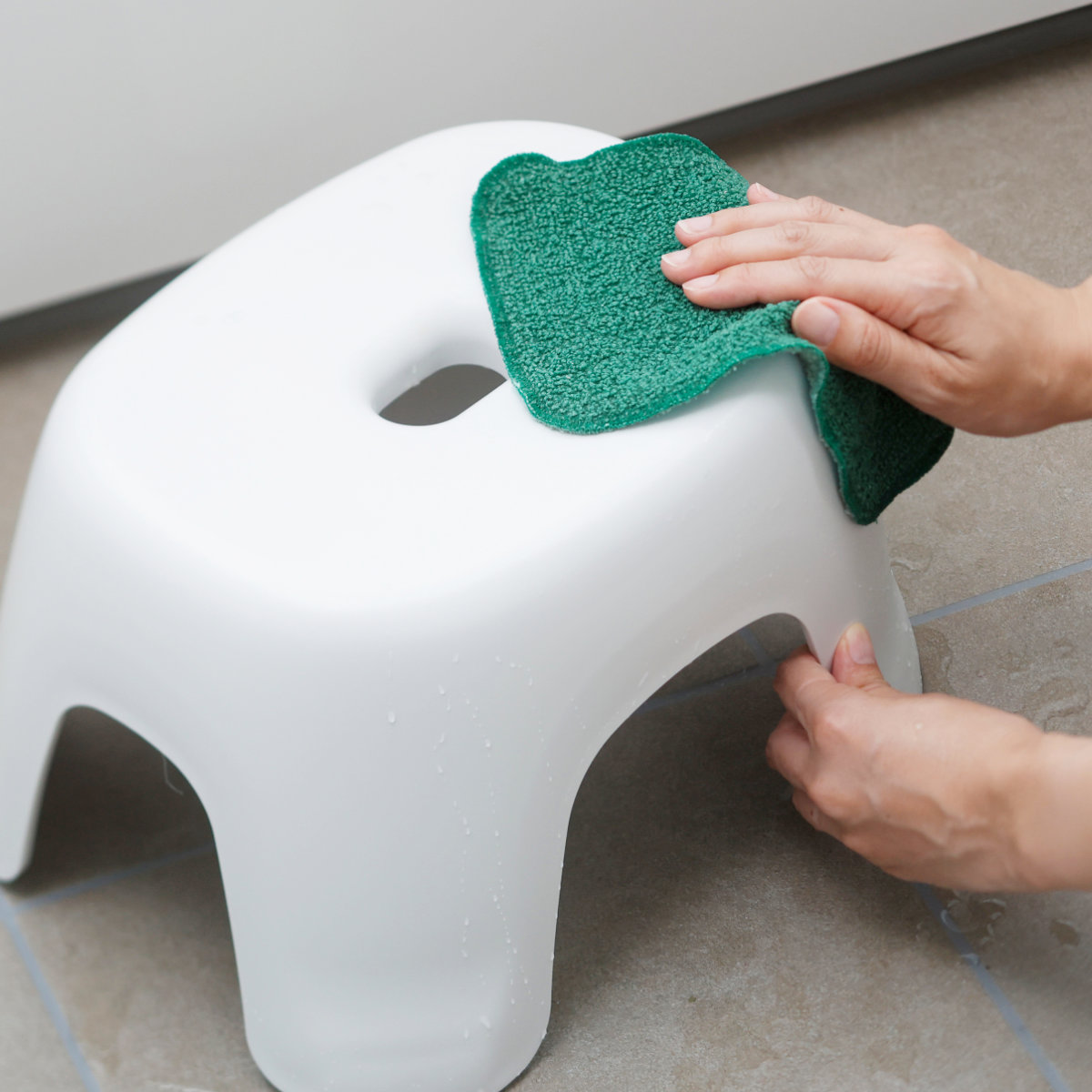やわらかなアクリルパイルが油汚れをしっかり吸着します。鏡やお風呂の椅子、傷つきが気になるアイテムも安心して洗えます。