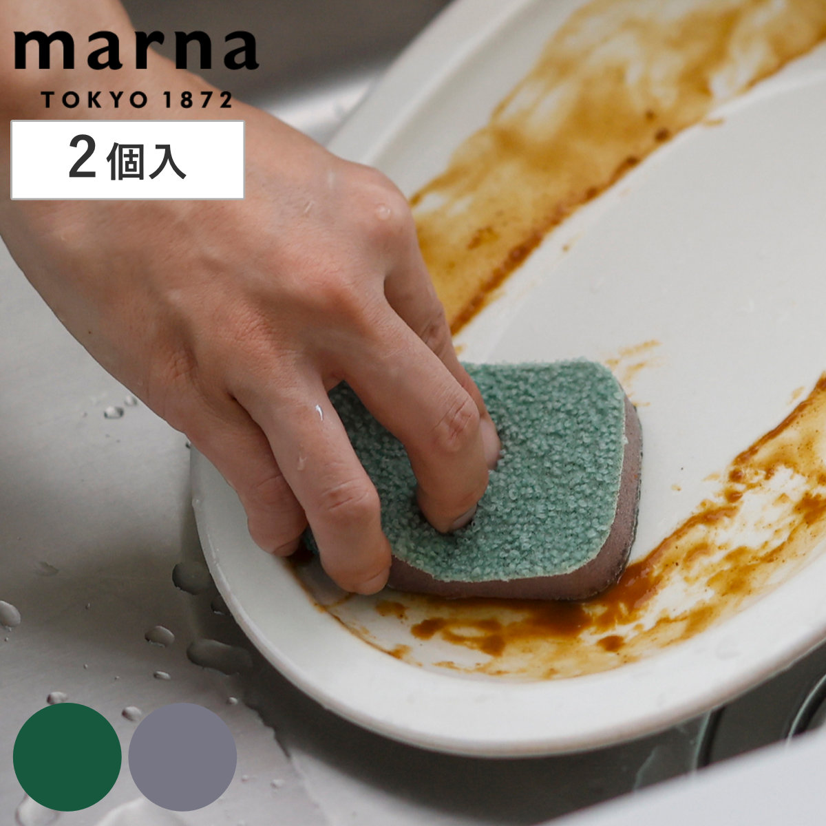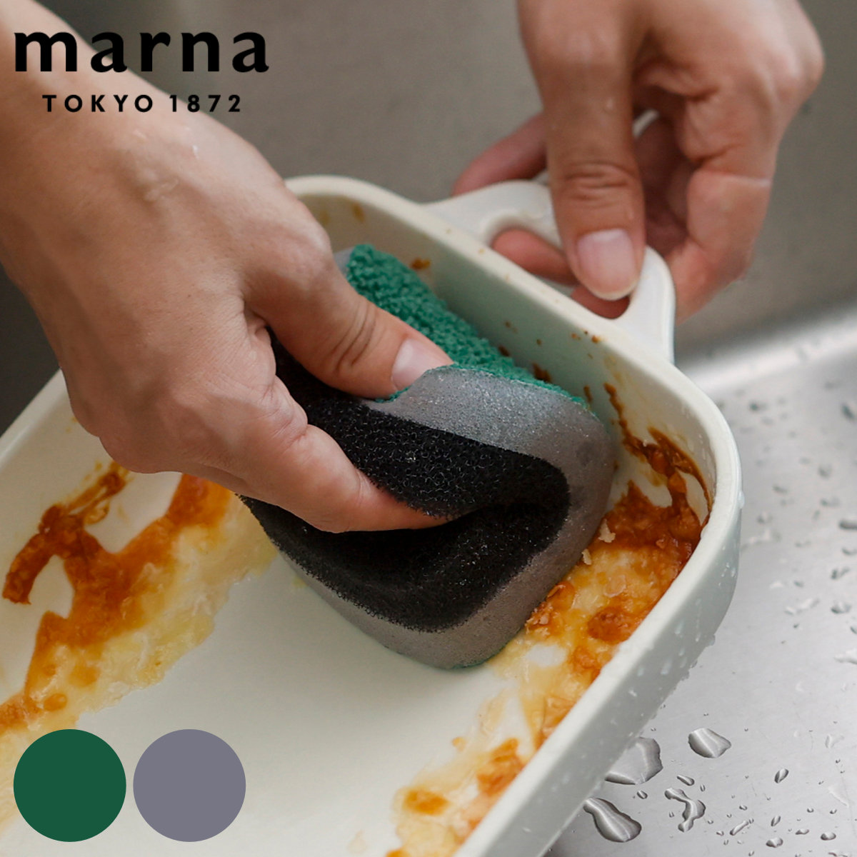 marna マーナ 水ピカ キッチンスポンジ 3層 ( 食器洗いスポンジ 食器用スポンジ 台所スポンジ 洗剤不要 水だけ 日本製 二面 両面 3層構造 皿洗い 油汚れ ) 【グリーン】
