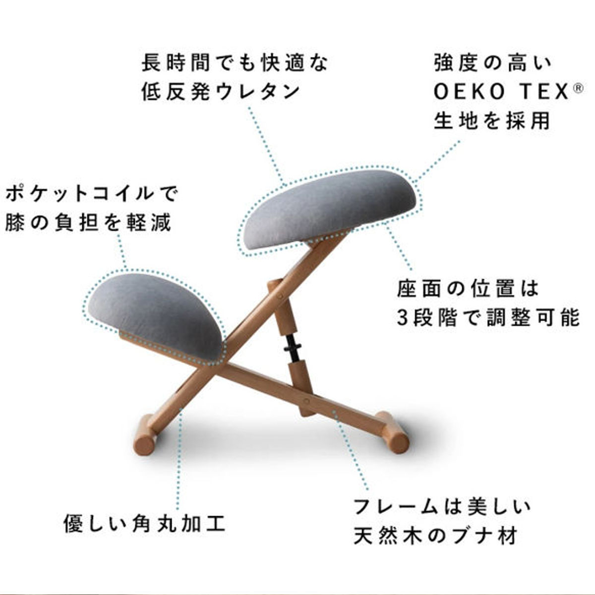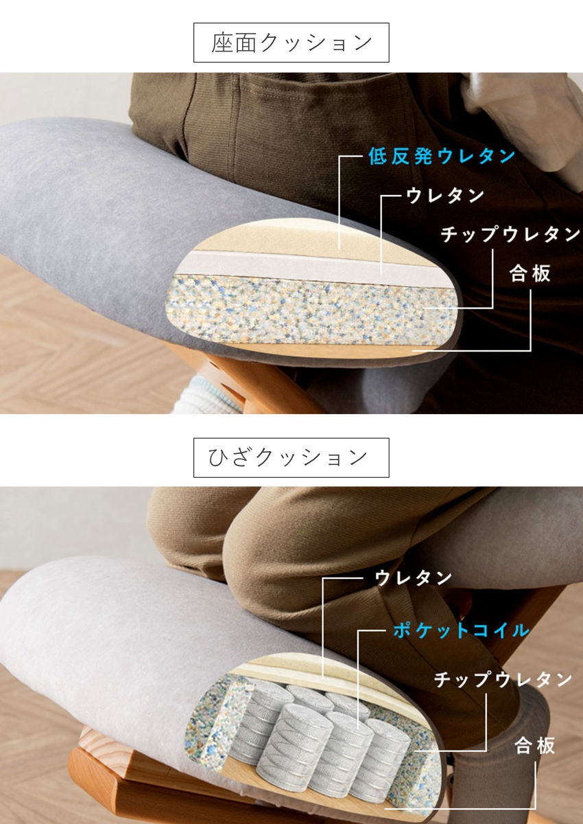 さらに、ひざクッションにはポケットコイルを内蔵。 ひざへの負担を軽減し、従来モデルより、長時間でも快適に使える設計へと進化しています。