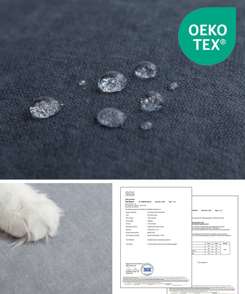 肌触りのよい生地には、OEKO-TEX(R) STANDARD 100認証取得ファブリックを採用。有害物質基準をクリアした安心素材です。ひっかき傷に強く、毛玉ができにくく、撥水性も備えた高耐久仕様。毎日使うものだからこそ、長く安心して使える品質にこだわりました。