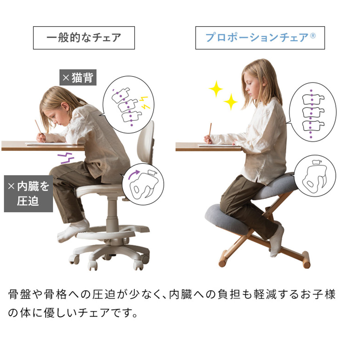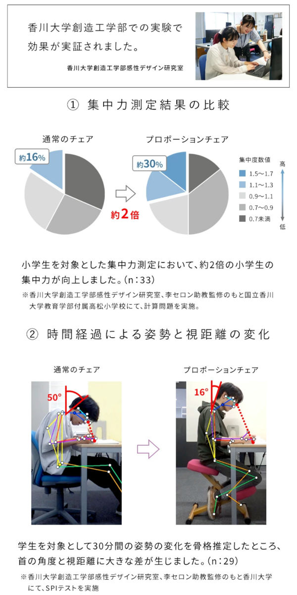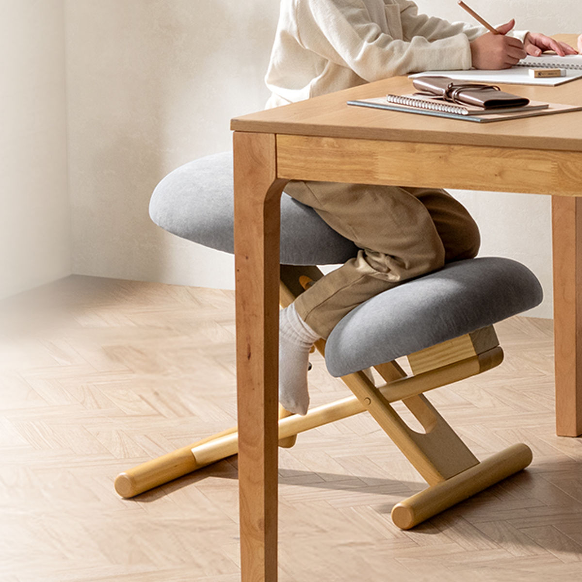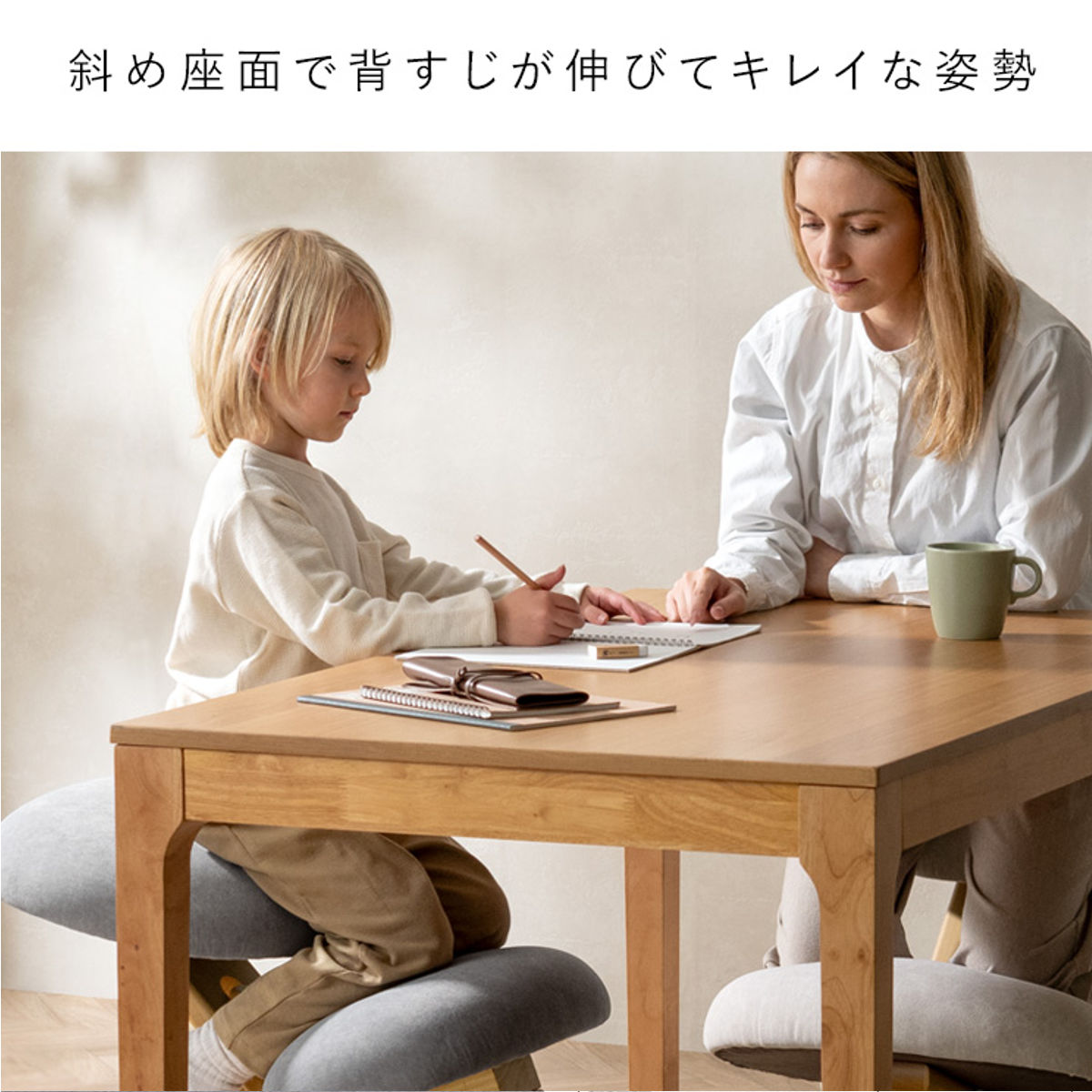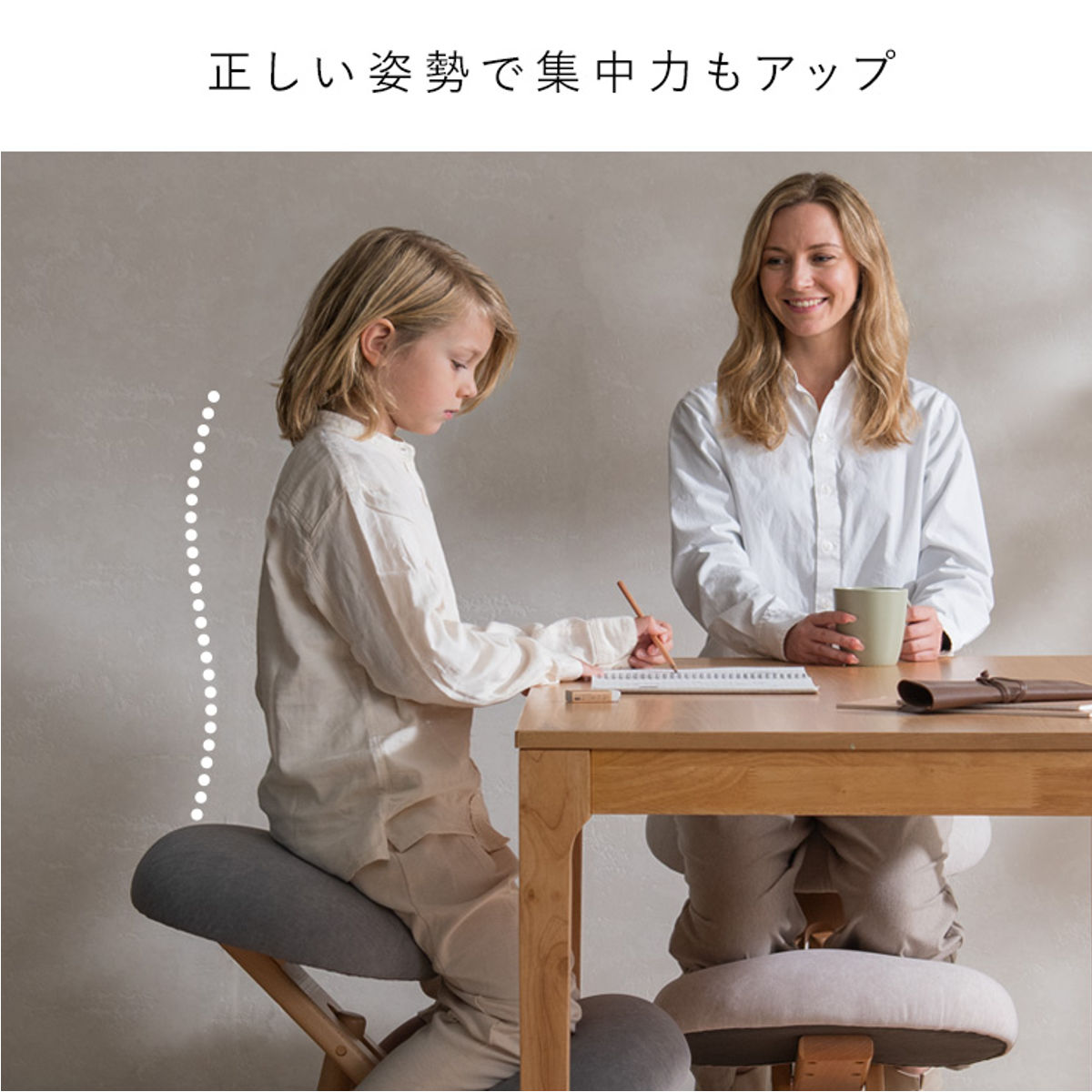 座るだけで背すじが伸び、集中しやすい姿勢へ