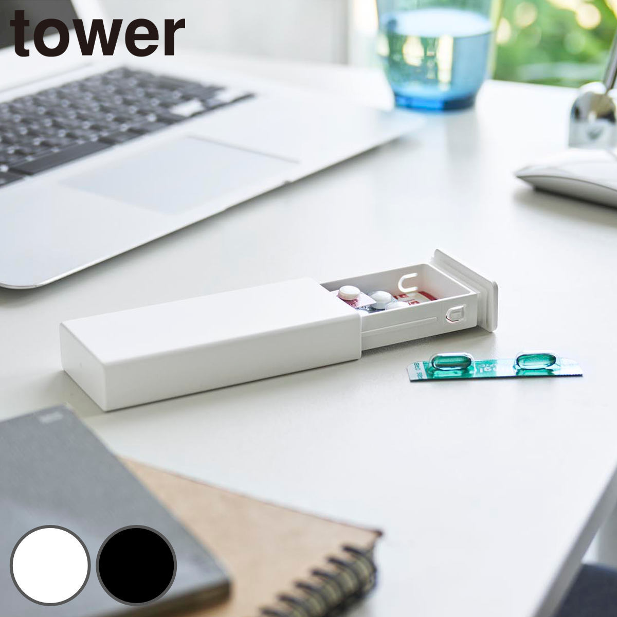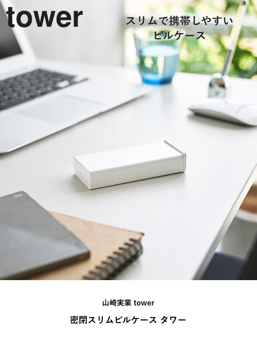 山崎実業 tower 密閉スリムピルケース タワー ( 4903208106627 タワーシリーズ ピルケース 薬入れ 密閉 スリム ピル ケース サプリメントケース くすりケース 薬収納 ) 【ホワイト】