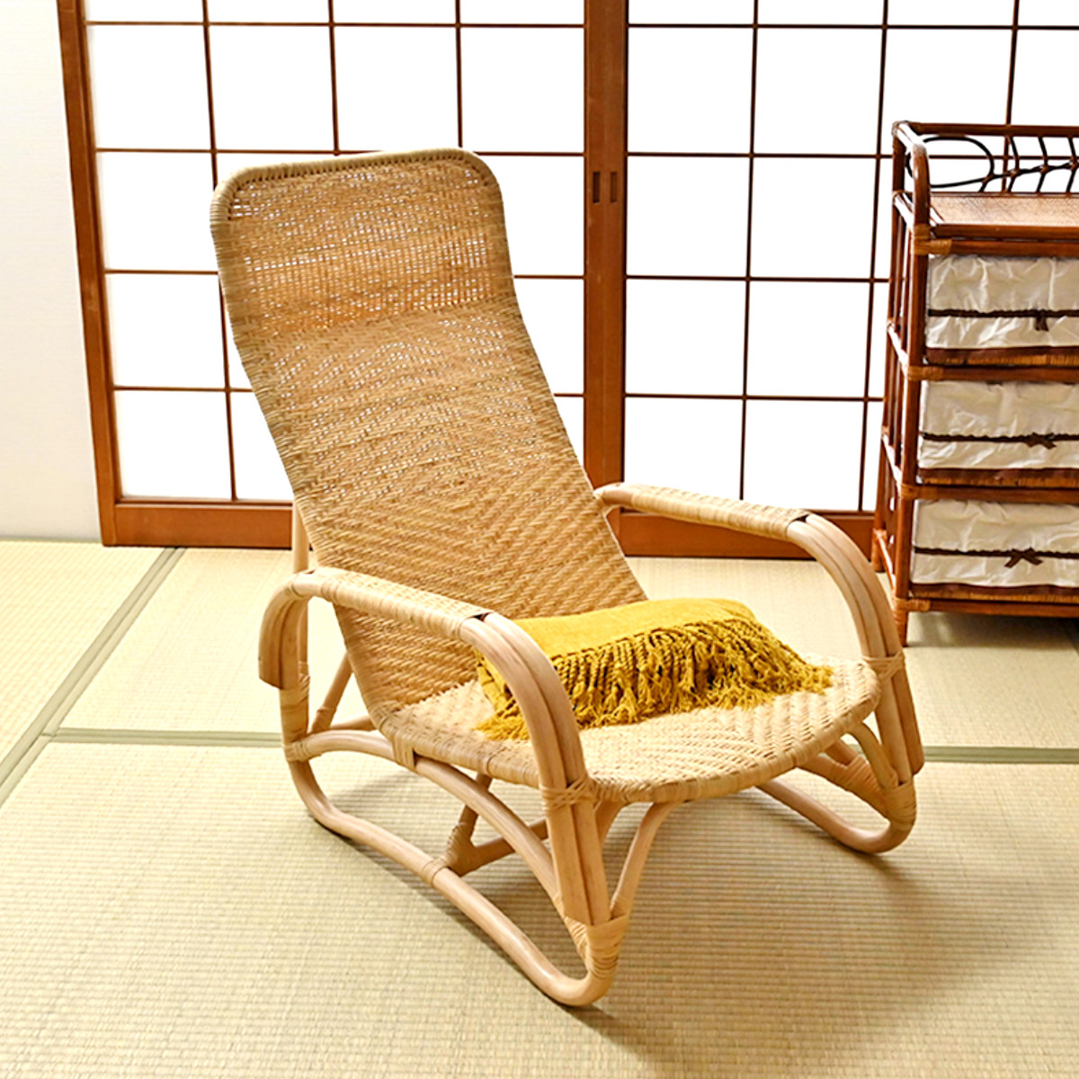 ラタンの風合いが空間に温かみを添え、和室・洋室どちらにも合う、長く愛されるデザインです。
