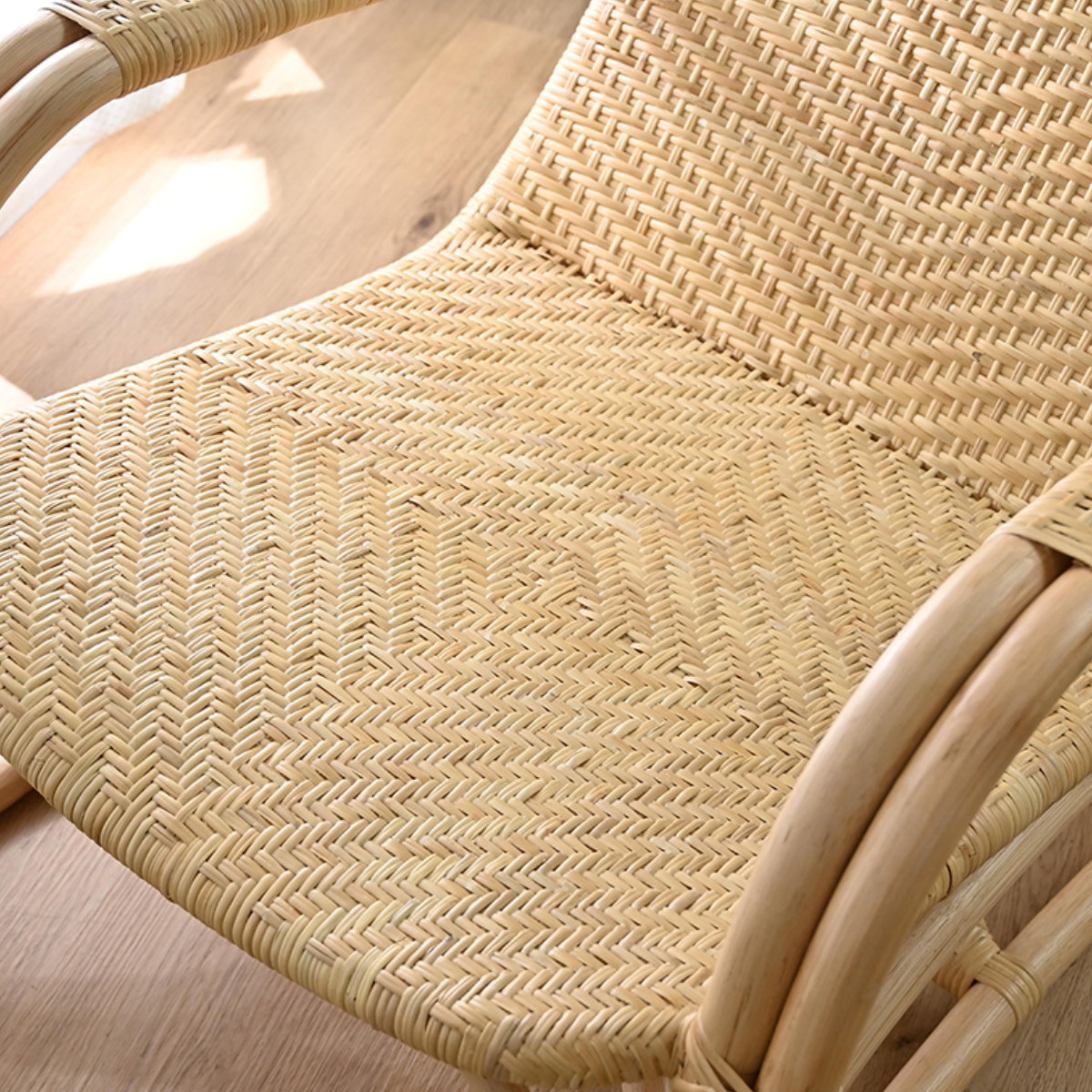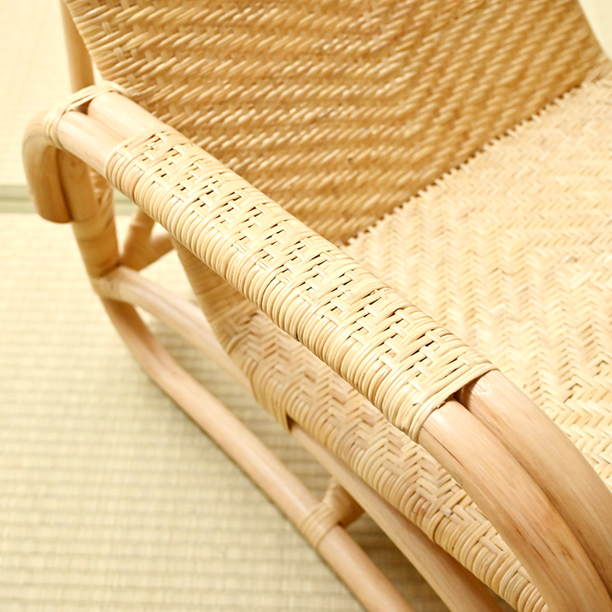 握りやすい太さのラタン肘掛け付き。立ち上がる際の支えとしても使えるため、日常の動作をサポートしてくれます。